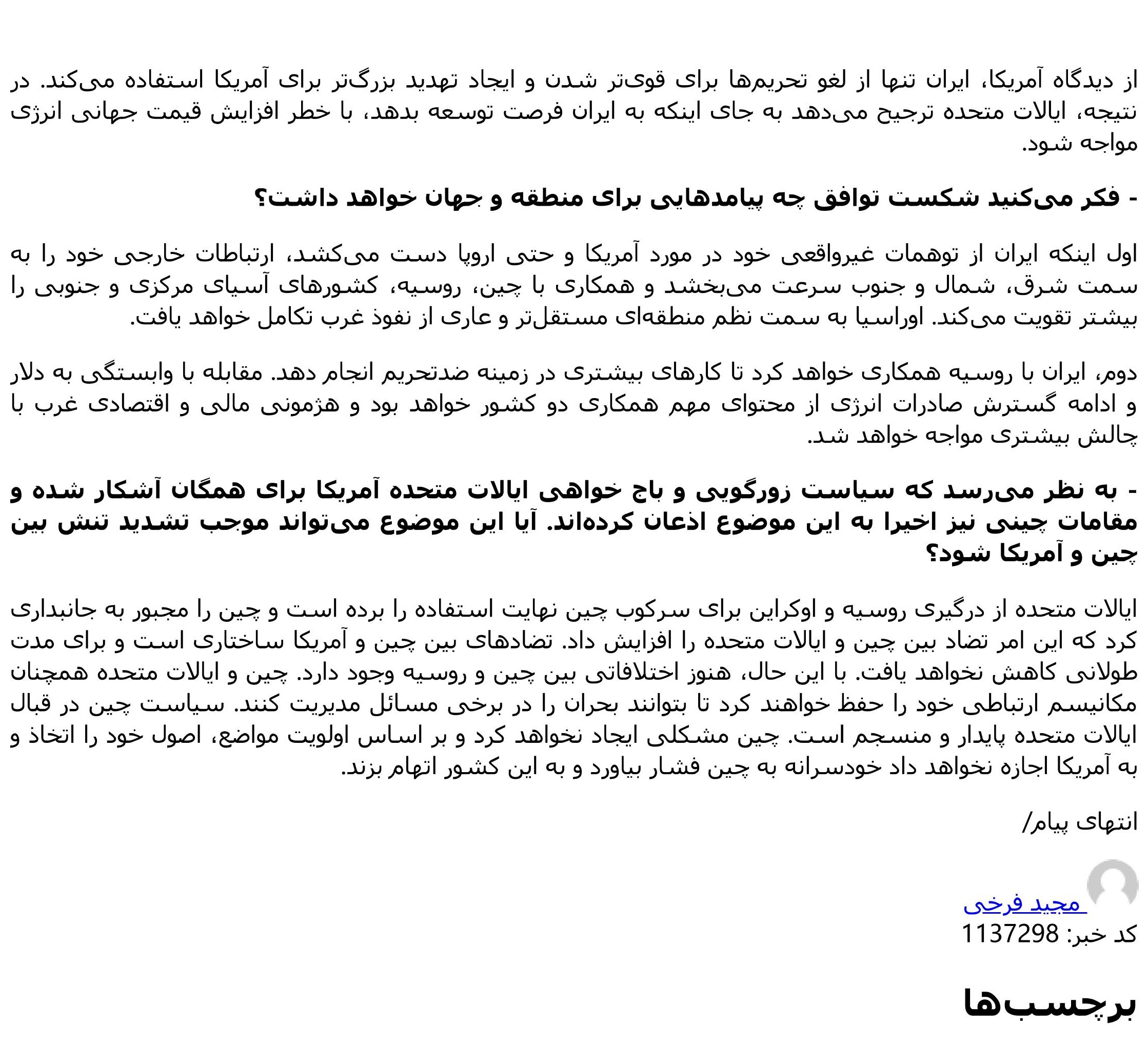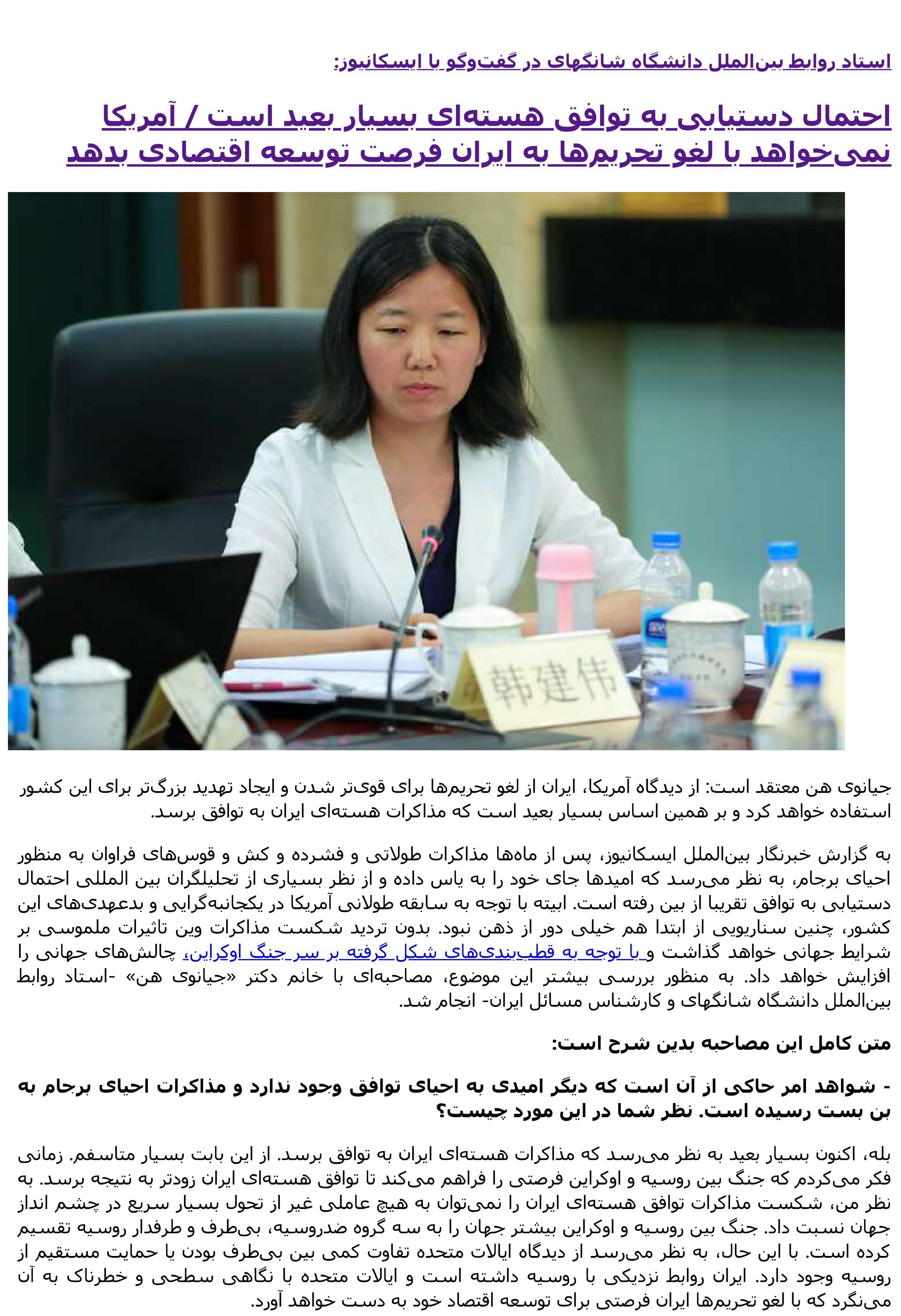 2022年4月20日,上外中东研究所韩建伟副教授就对伊核协议谈判结果及其对地区及世界的影响接受伊朗ISCA通讯社专访,同日采访被伊朗法尔斯通讯社转载,全文如下:
