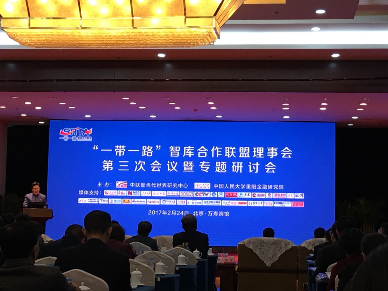 2017年2月23~24日,由中联部当代世界研究中心和中国人民大学重阳金融研究院主办的第三届“一带一路”智库合作联盟理事会会议暨专题研讨会在北京举行。来自政府部门、科研院所、民间智库、媒体和企业的200余名专家、学者、媒体人士和企业家出席会议。中联部副部长郭业洲、复旦大学党委书记焦扬和中国国际经济交流中心副理事长魏建国作为智库合作联盟共同理事长先后致辞。会议议程分为“领导致辞”、“一带一路智库联盟年度报告和嘉宾发言”、“专题研讨”三个环节进行。