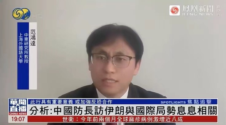 日,上外中东研究所范鸿达教授就中国伊朗关系接受凤凰卫视《华闻大直播》采访。