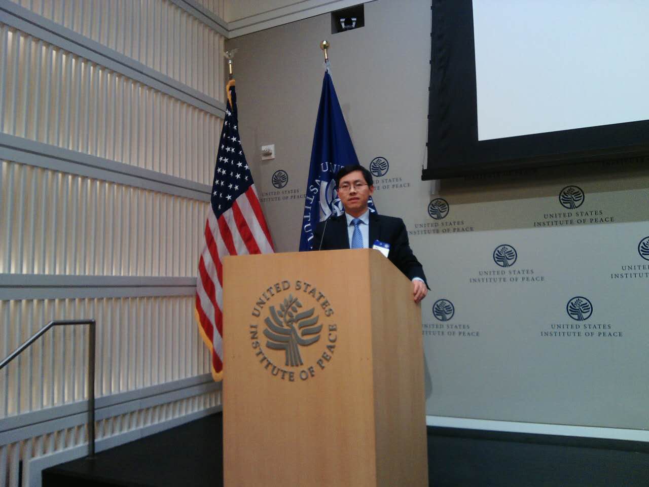 为促进中美智库之间的学术交流和中美高层之间的战略互信,探讨特朗普当选总统后中美两国政府如何在全球范围内建立更加密切的互利合作关系,美国和平研究所与乔治敦大学于2017年3月22日在美国和平研究所联合举办“中美在冲突区:合作还是竞争”国际研讨会。来自美国和平研究所、战略与国际研究中心(CSIS)、传统基金会、史汀生中心、美国中东研究所、哈德逊研究所、乔治华盛顿大学、美利坚大学、约翰霍普金斯大学、德克萨斯大学、德克萨斯基督教大学等美方学者,以及来自中国、俄罗斯等其他国家的100余名学者出席会议。为期一天的会议分开幕式、阿富汗与巴基斯坦专题、非洲专题、中东专题、朝鲜半岛专题、闭幕式共六个部分。上外中东研究所孙德刚研究员出席此次研讨会,以“中国在叙利亚危机中的立场与中美关系”为题作主旨发言,并就现场听众提出的问题一一作详细解答。