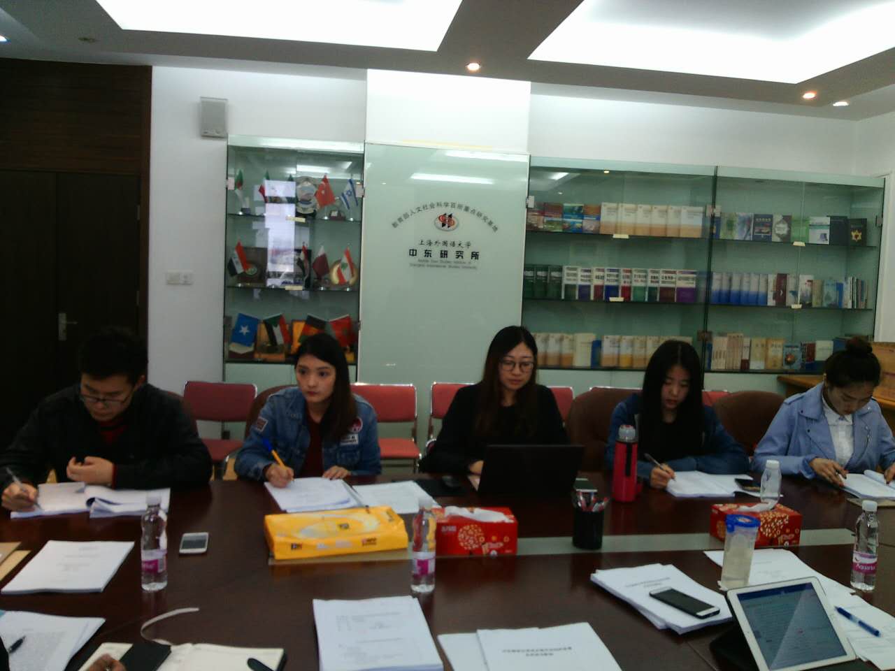 2017年4月7日上午,上外中东研究所2014级硕士生学位论文第一次预答辩在704会议室举行,孙德刚、李意、钮松、余泳和包澄章五位研究生导师出席。各位老师先后对朱倩、尹婉娜、张芳圆、刘耀虹和何少雄五位硕士生的学位论文初稿进行了点评,对其中存在的诸多问题进行了讨论并提出了进一步修改的具体建议。狠把人才培养的质量关是中东研究所的重要职责之一,今后中东所将会继续强化学位论文从开题到答辩的全过程把控,真正做到研究生的“严进严出”。