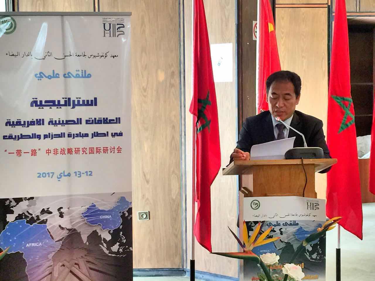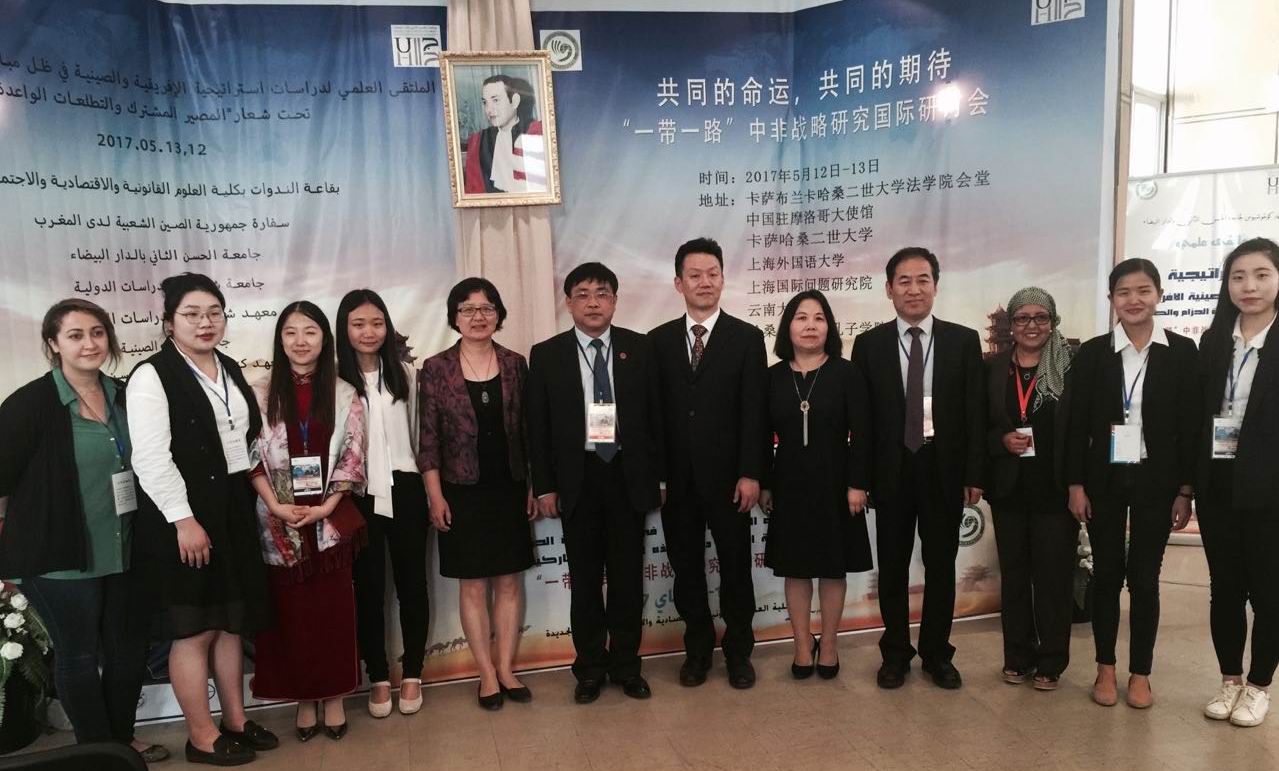 2017年5月12日至15日,由摩洛哥卡萨布兰卡哈桑二世大学孔子学院与哈桑二世大学法经学院联合主办“‘一带一路’中非战略研究国际研讨会”在卡萨布兰卡哈桑二世大学举行,由上海外国语大学副校长周承为团长的上外代表团应邀出席会议,周承副校长在会议开幕式上致辞,代表团成员、上外中东研究所专职研究员王有勇教授、丁俊教授及上外丝路战略研究所马丽蓉教授随团参会,并在会议上分别作了题为“推进中非人文交流合作的几点建议”、“‘一带一路’与中非战略合作的路径选择”、“‘一带一路’与中阿(中国-阿拉伯)‘民心相通’”的主旨发言。中国驻摩洛哥大使孙树忠在会议期间会见了代表团一行。