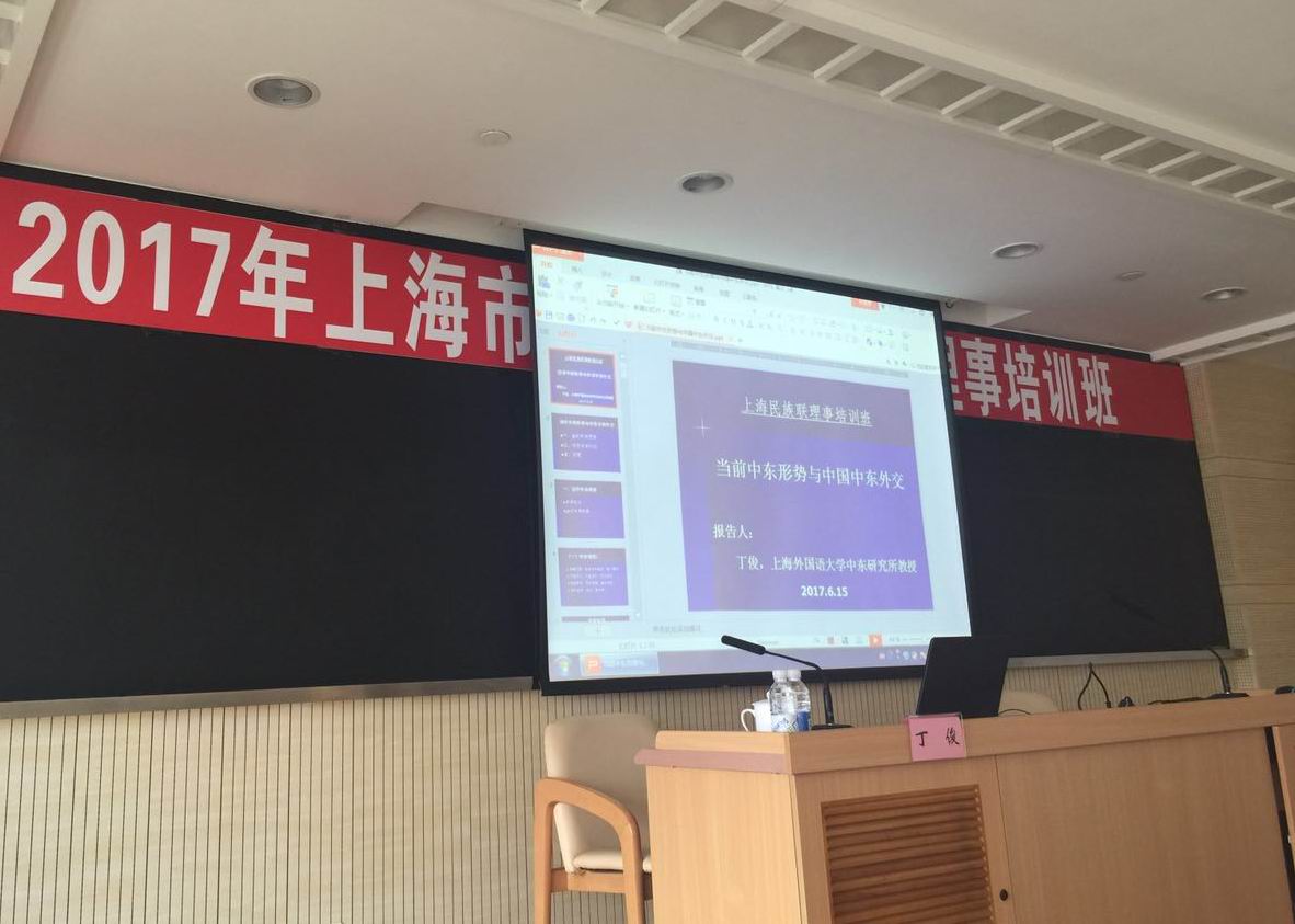2017年6月15日,上外中东研究所丁俊教授应邀在上海市社会主义学院为“2017年上海市少数民族联合会理事培训班”作了题为“当前中东形势与中国中东外交”的专题形势报告。该培训班由上海市少数民族联合会与上海市社会主义学院联合举办,来自上海市民宗委及上海市各区有关单位领导、上海市少数民族联合会第七届理事会理事等共计60多人参加了报告会。