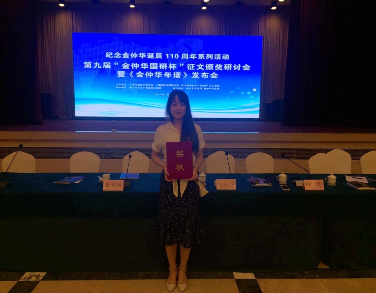 2017年7月14日,上海市国际关系学会、上海国际问题研究院、文汇报社和浙江省桐乡市人民政府联合主办的第九届“金仲华国研杯”征文颁奖研讨会暨第二十一届上海市国际关系学会青年学者论坛在浙江省桐乡市举办。经过专家评审,中东研究所2016级硕士研究生张璇的论文《“一带一路”背景下中国参与以色列“红海—地中海”高铁建设的前景与风险》获得乙组二等奖。
