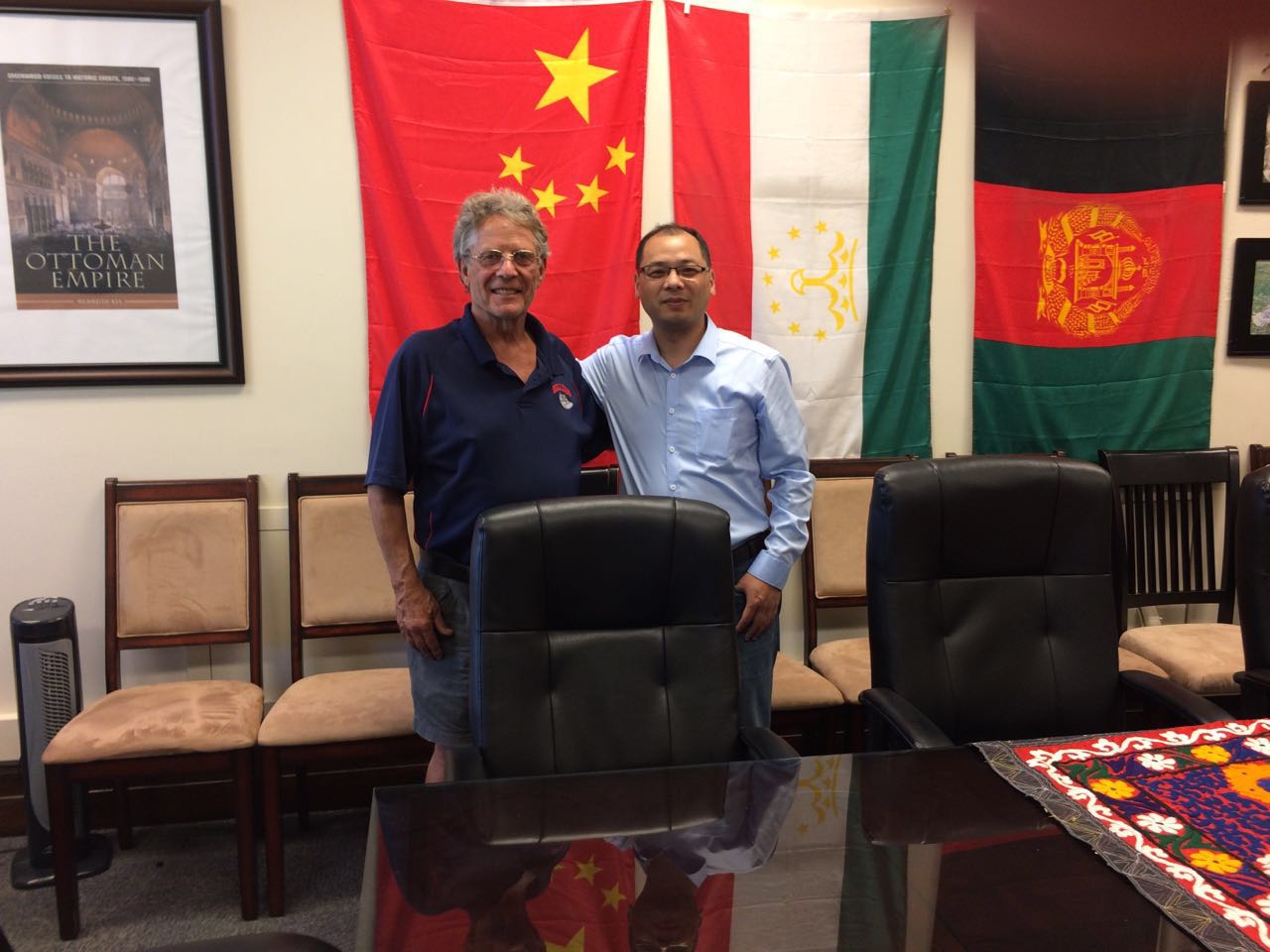 2017年8月27日,上外中东研究所赵军副教授抵达美国蒙大拿大学,开启为期一年的访学工作。经过短暂休整及手续办理后,9月3日,赵军拜访了蒙大拿大学中亚—西南亚研究中心主任、历史系终身教授、蒙大拿大学前副校长梅尔达德·奇亚教授(Mehrdad Kia)。奇亚教授在办公室亲切地接待了赵军老师。