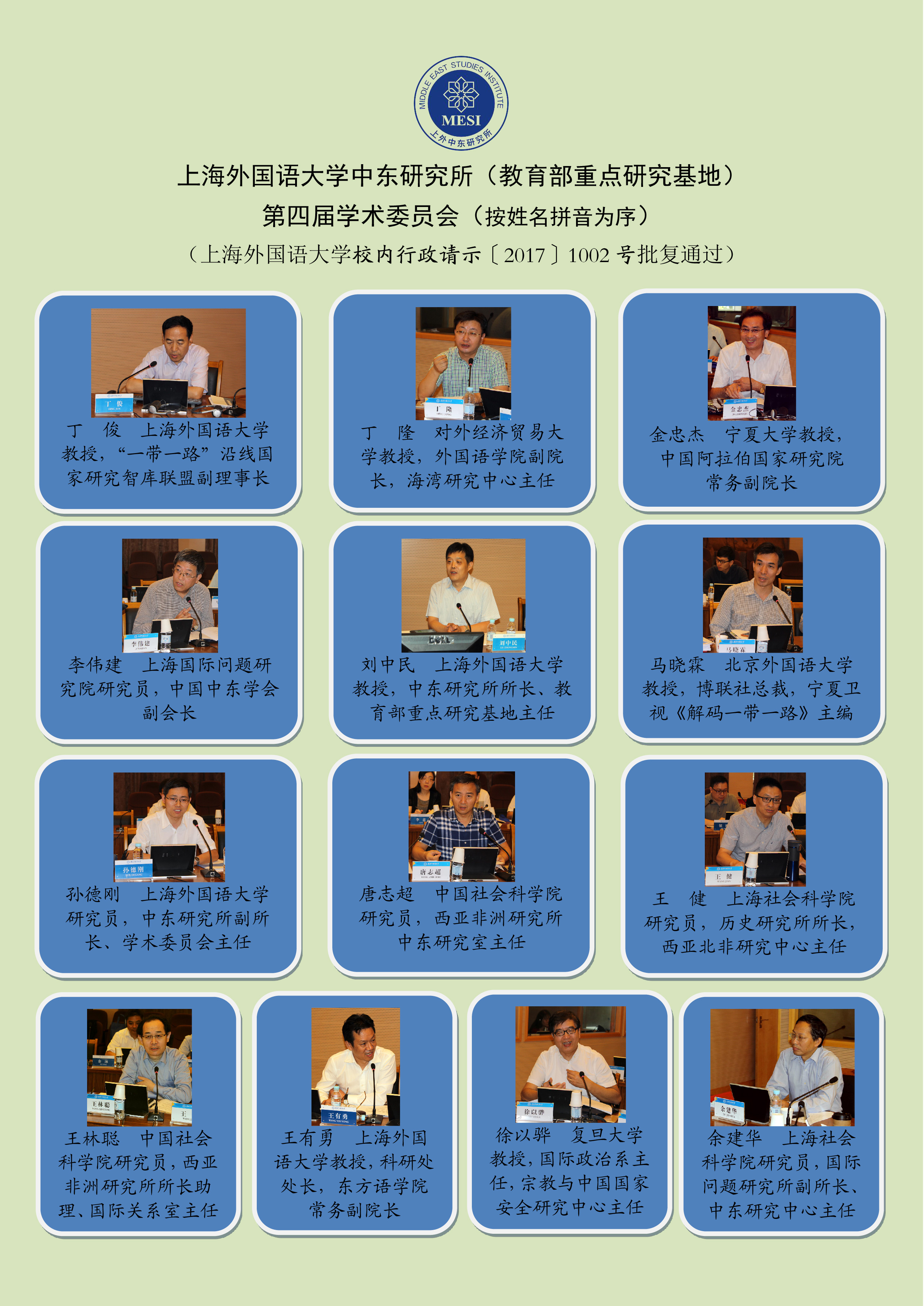上海外国语大学中东研究所第四届学术委员会组成人员简介