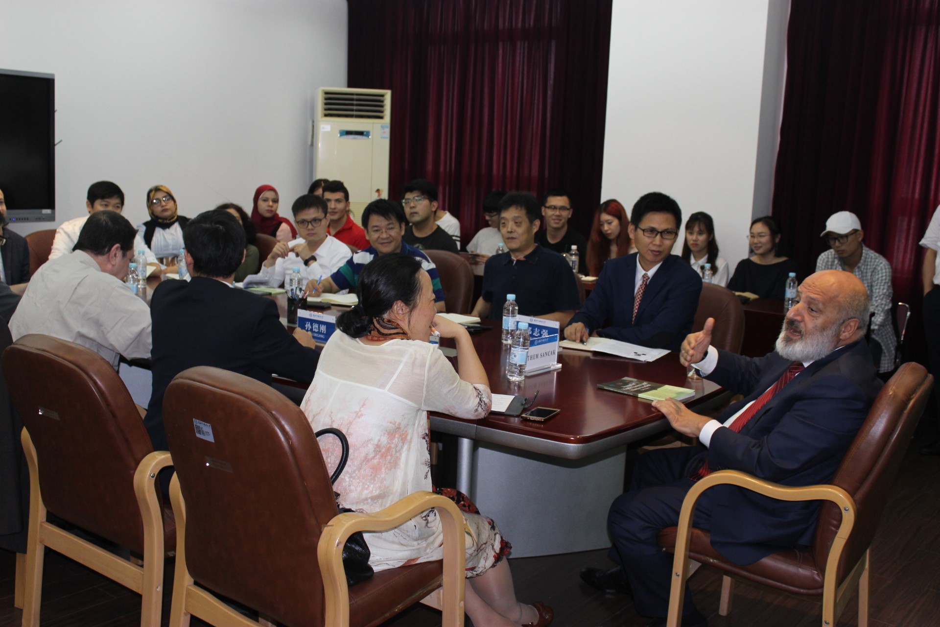 Ethem Sancak先生首先从历史和现实的角度分析了古代丝绸之路、中国与中东以及西欧的交往。接着,他分析了库尔德问题的历史根源和现状。他认为库尔德独立公投是不切实际,是美国扶持的第二个代理人从伊斯兰内部来搞乱中东。讲座结束后,Ethem Sancak先生就库尔德问题、土耳其政策等问题与现场师生进行了热烈互动。