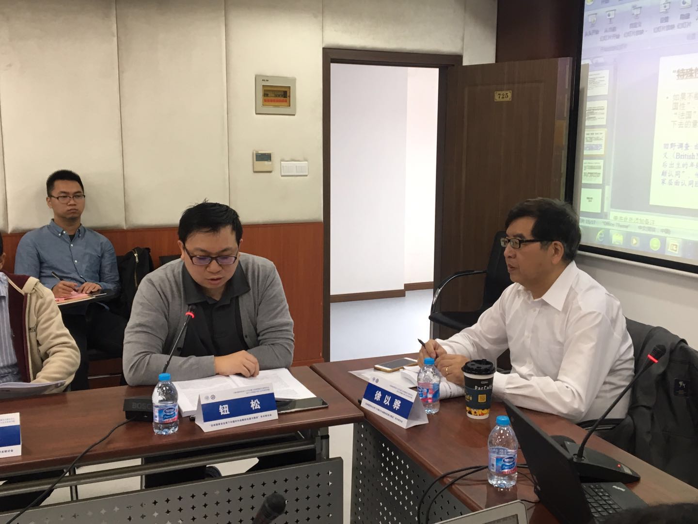 2017年10月14日,上外中东研究所钮松副研究员出席“总体国家安全观下中国对外战略机遇与挑战”学术研讨会,此次会议由上海高校智库复旦大学宗教与中国国家安全研究中心和复旦大学国际关系与公共事务学院联合主办。出席此次研讨会的有来自复旦大学、北京大学、中国人民大学、中山大学、上海财经大学、大连海事大学、华东理工大学、福建师范大学、台湾东吴大学、南阳师范学院、上海社科院、上海宗教文化研究中心等机构的学者。此次研讨会的议题包括国家与地区安全、宗教与文化安全、“一带一路”与周边安全等,钮松副研究员的发言题目是《IS恐怖高压下的伊斯兰世界及大国在叙利亚问题上的应对》。