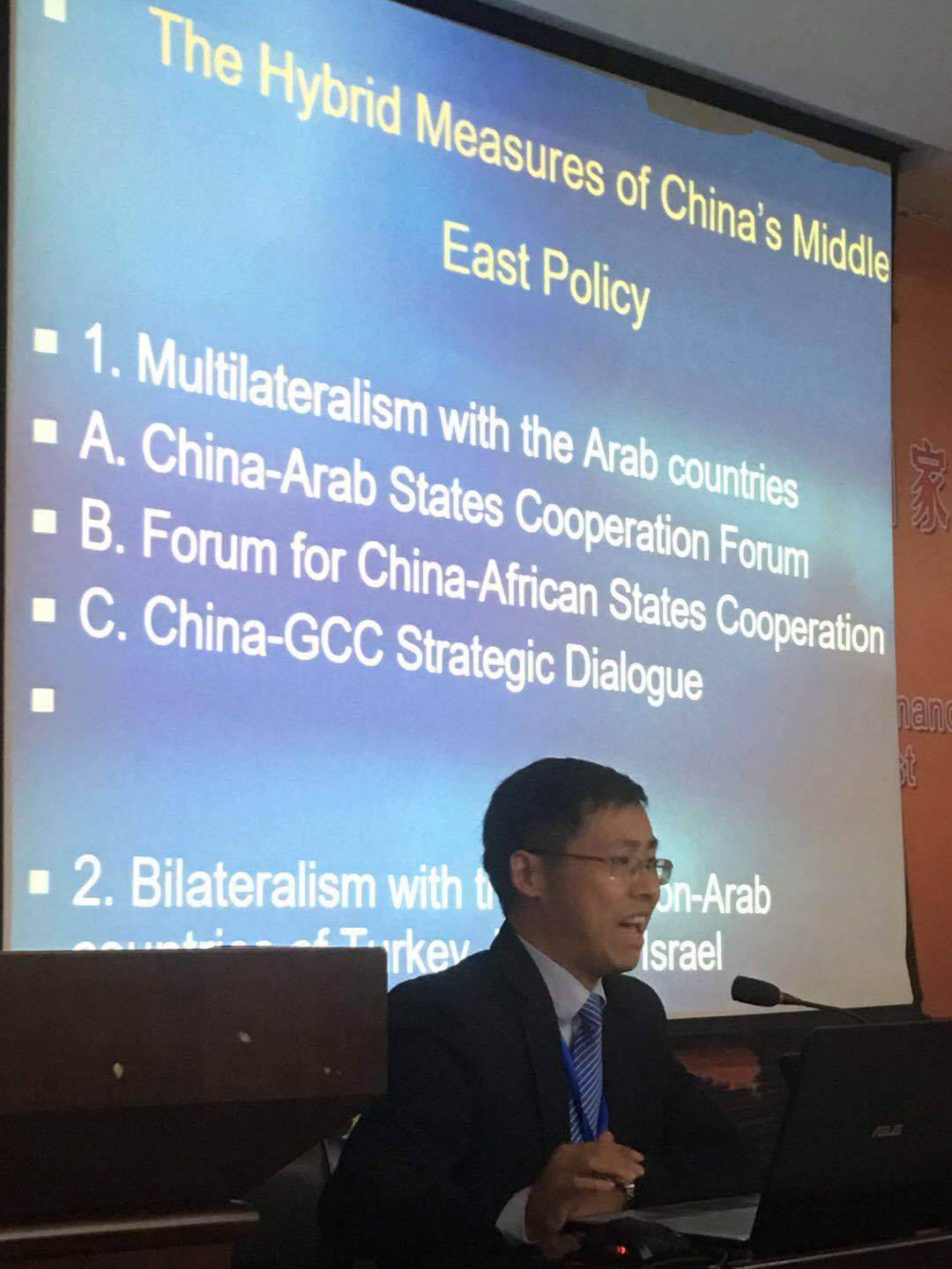 在10月13日的西北大学叙利亚研究中心成立仪式暨“叙利亚问题的新变化及中国的应对”学术研讨会上,来自外交部、中国社科院、北京大学、上海外国语大学、北京语言大学、中国现代国际关系研究院等全国各地的40余位大使和专家学者共同出席。上外中东研究所刘中民、孙德刚、钮松、邹志强、舒梦参加了此次会议并发言,刘中民教授的发言题目为“中国在中东热点问题上的外交经验及其改进方向;孙德刚研究员的发言题目为“外部力量在叙利亚的博弈及其影响”;钮松副研究员的发言题目为“叙利亚问题上的美俄博弈及中国的应对”;舒梦博士的发言题目为“舆论在多大程度上影响叙利亚危机?”;邹志强博士的发言题目为“土耳其对叙利亚危机的政策转变”。此外,刘中民教授主持了第二场分组讨论“危机中的叙利亚国内冲突及影响”。