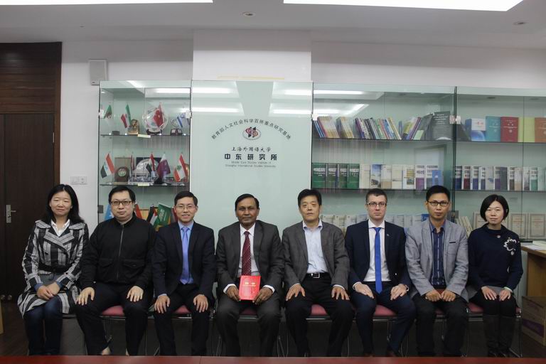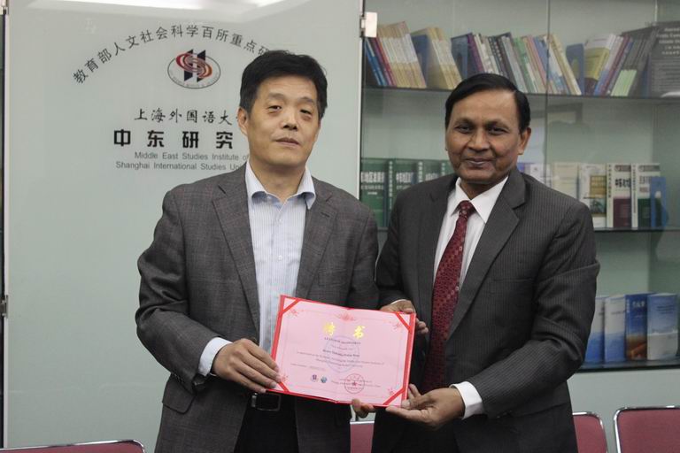 讲座结束后,中东研究所举行国际荣誉顾问聘任仪式,刘中民所长向拉纳教授颁发聘书,聘请拉纳担任上外中东研究所国际荣誉顾问。
