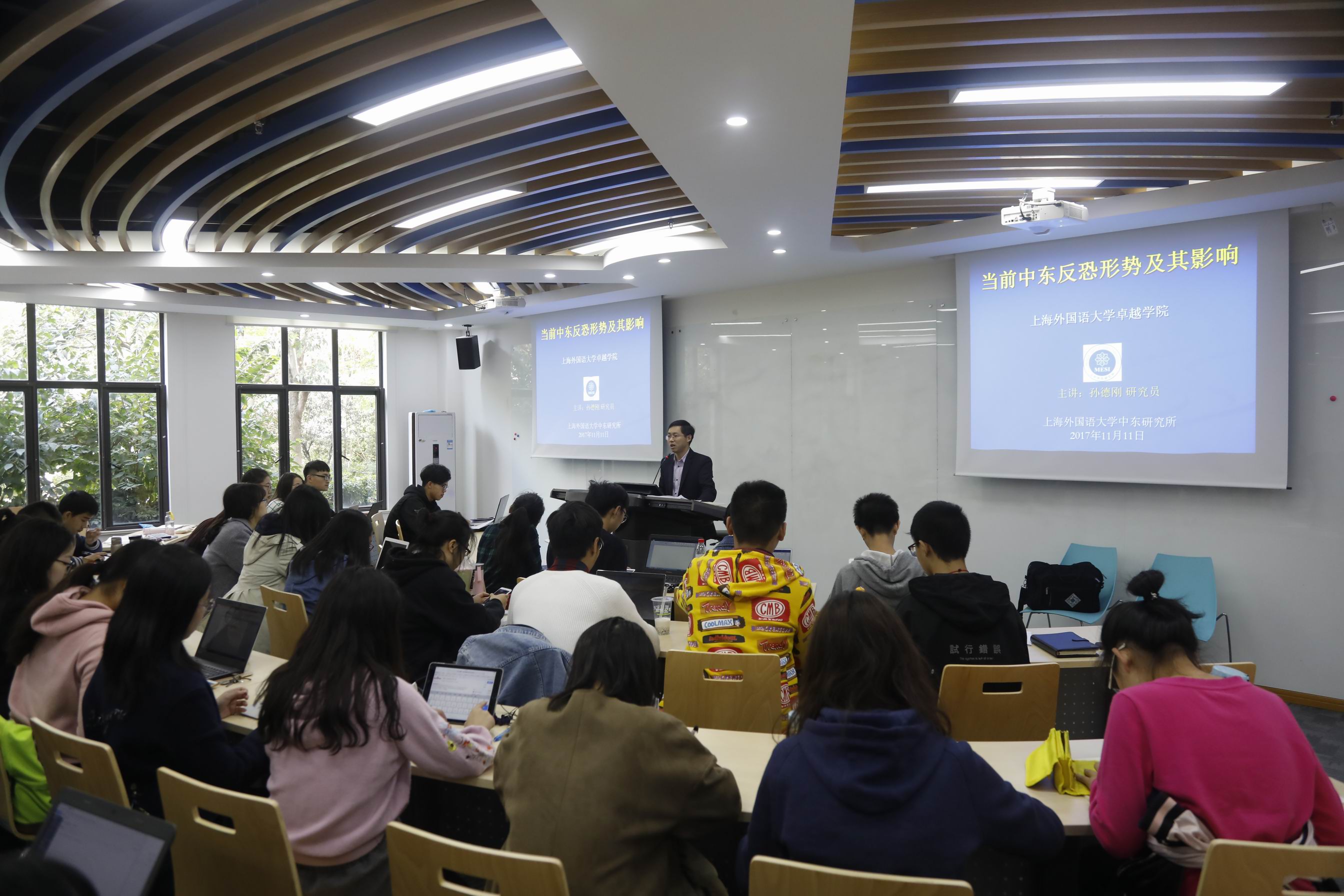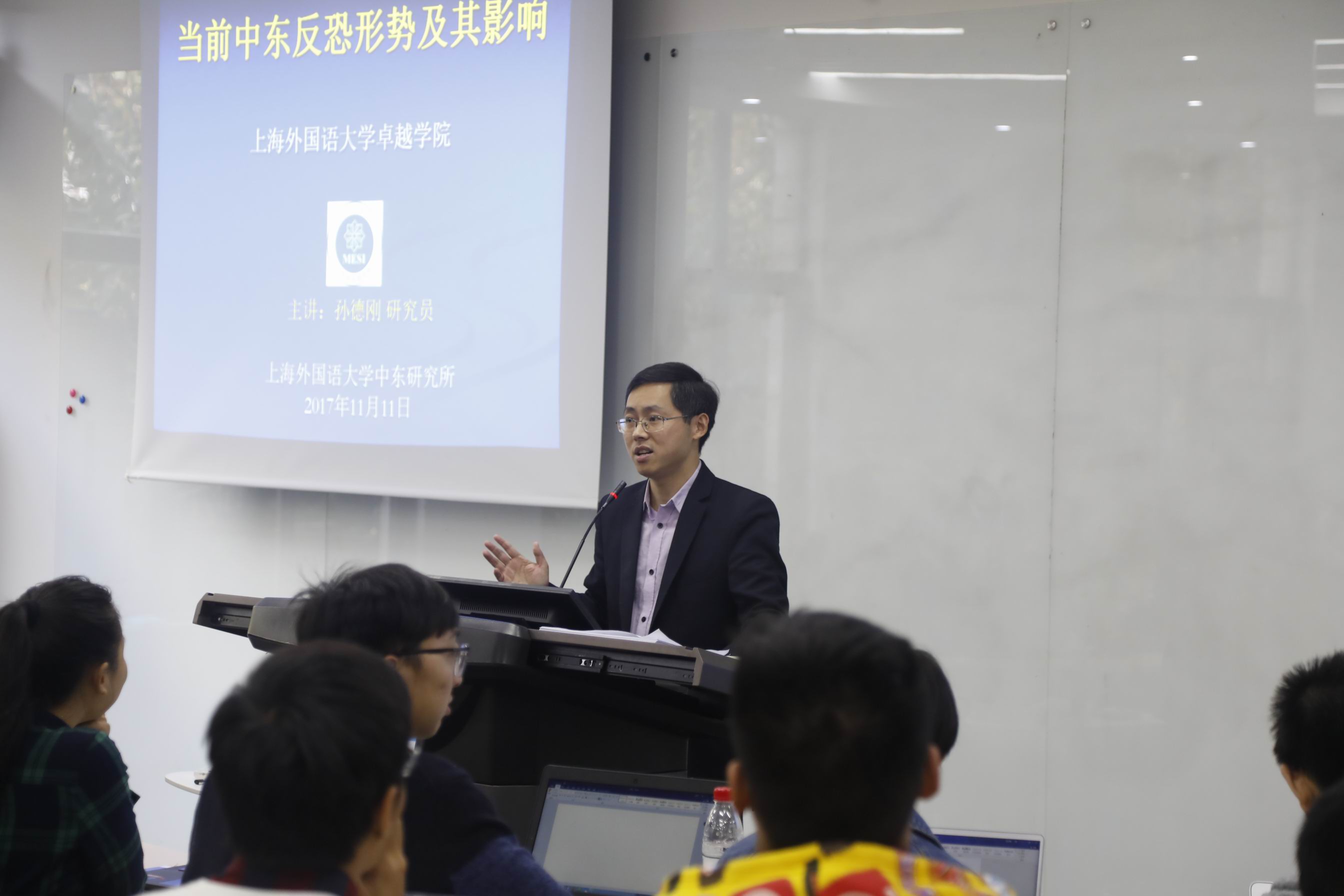 应上海外国语大学卓越学院的邀请,2017年11月11日,上外中东研究所朱威烈教授和孙德刚研究员出席了“中东问题研究专题”工作坊,并先后为卓越学院学生作学术报告。教务处处长姜智彬教授、卓越学院与其他院系本科生和研究生共80余人参加了为期一天的“中东问题研究专题”工作坊。