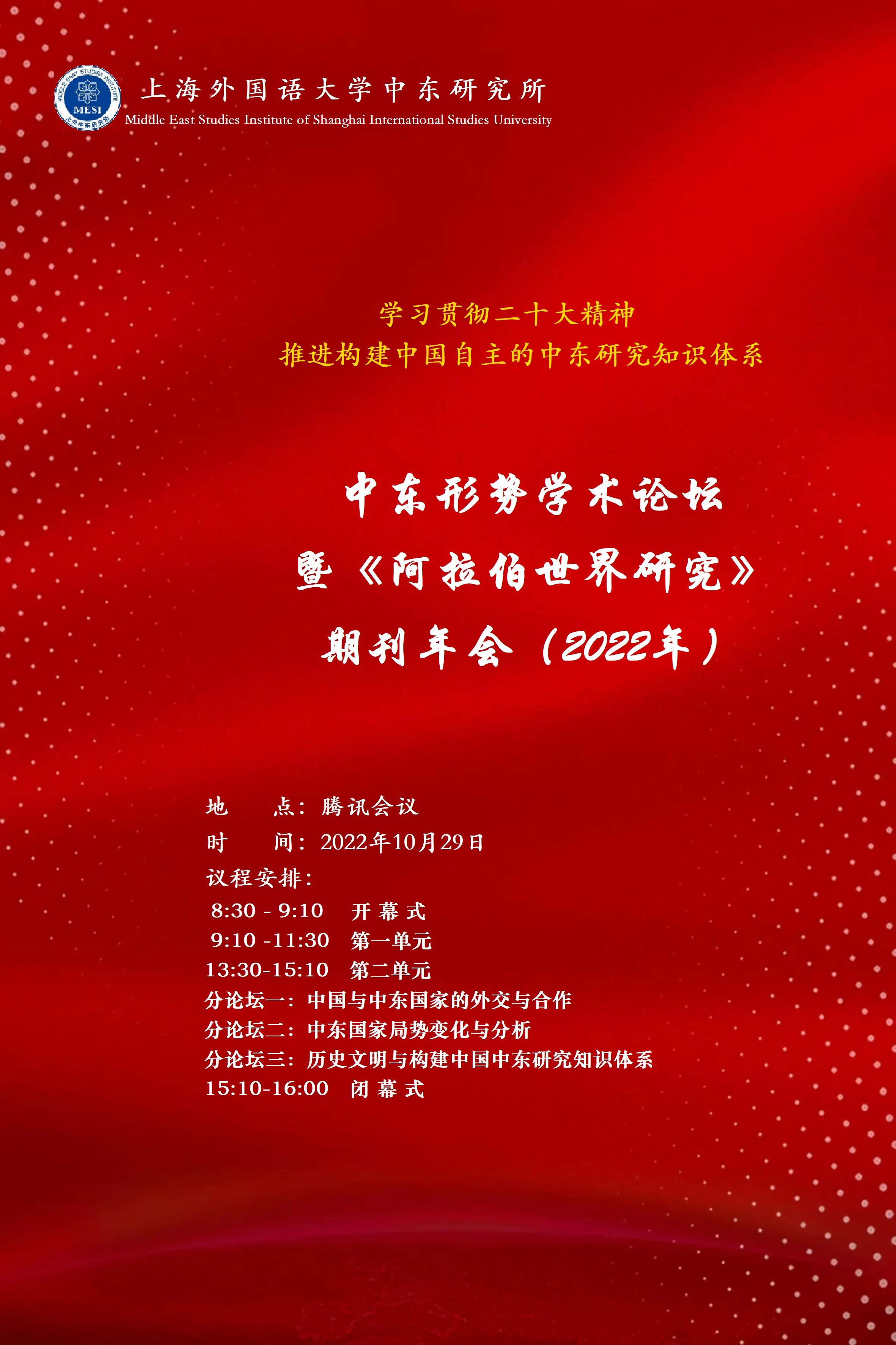 2022年10月29日上外中东形势学术论坛暨期刊年会会议手册
