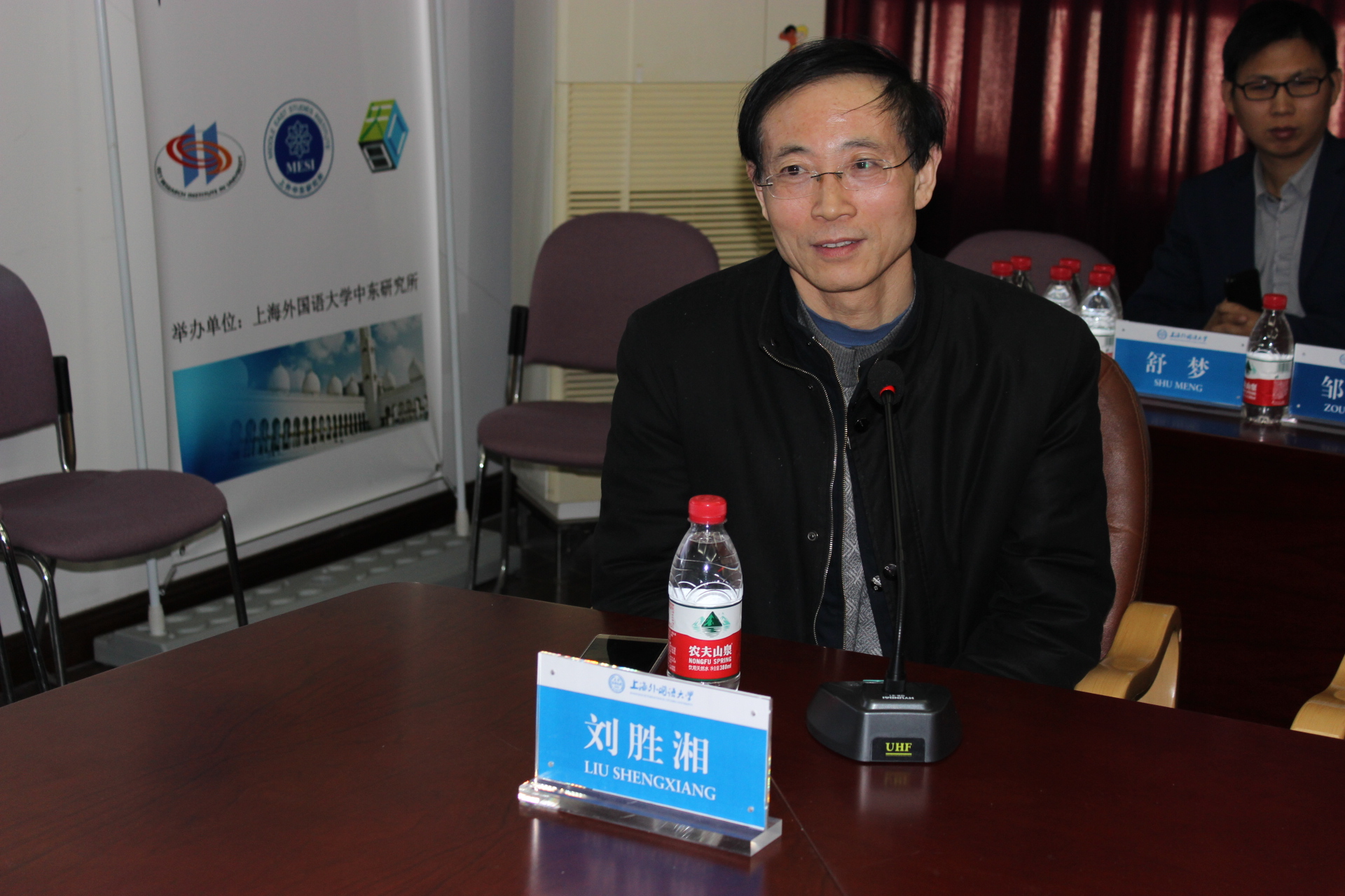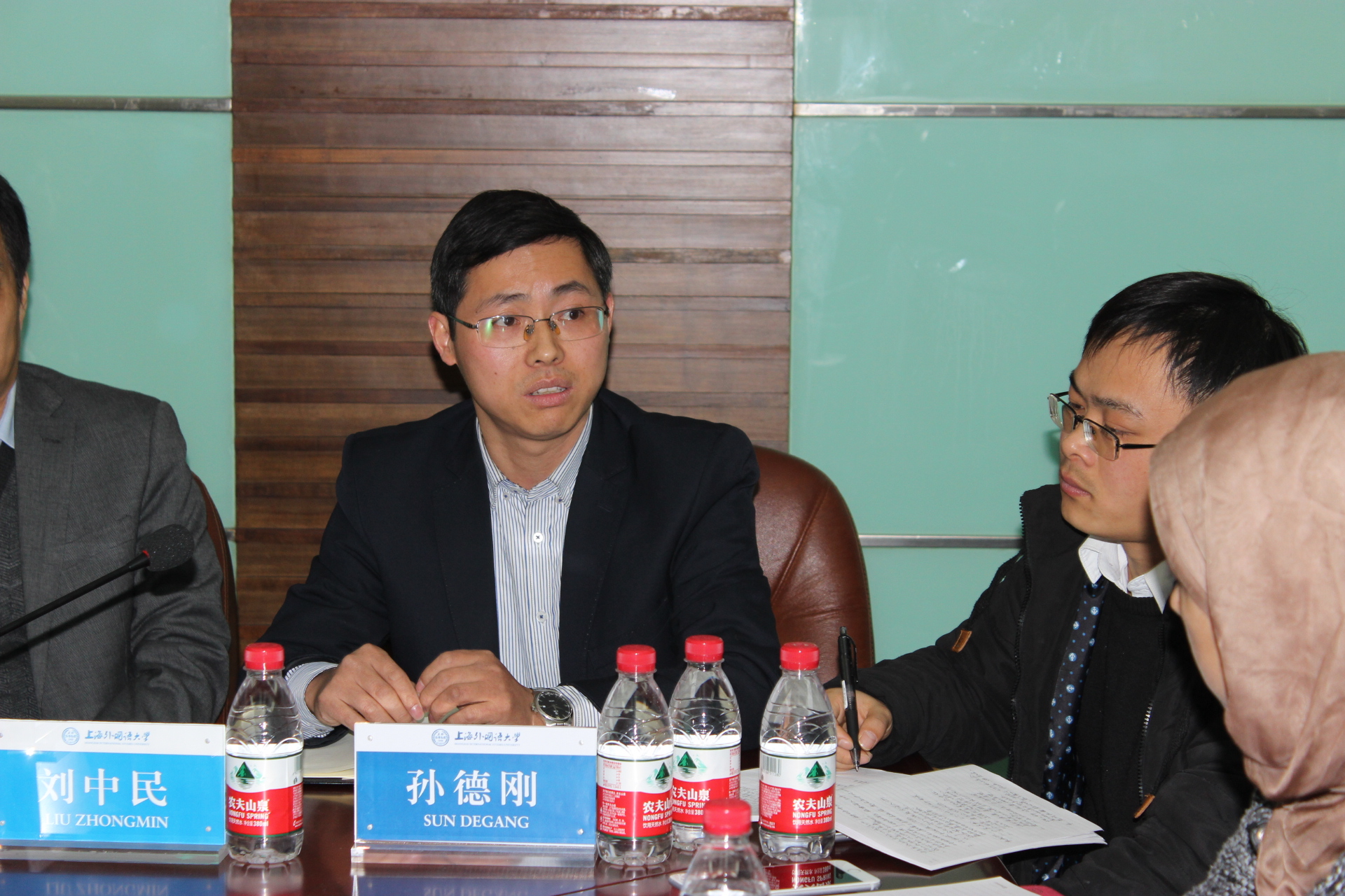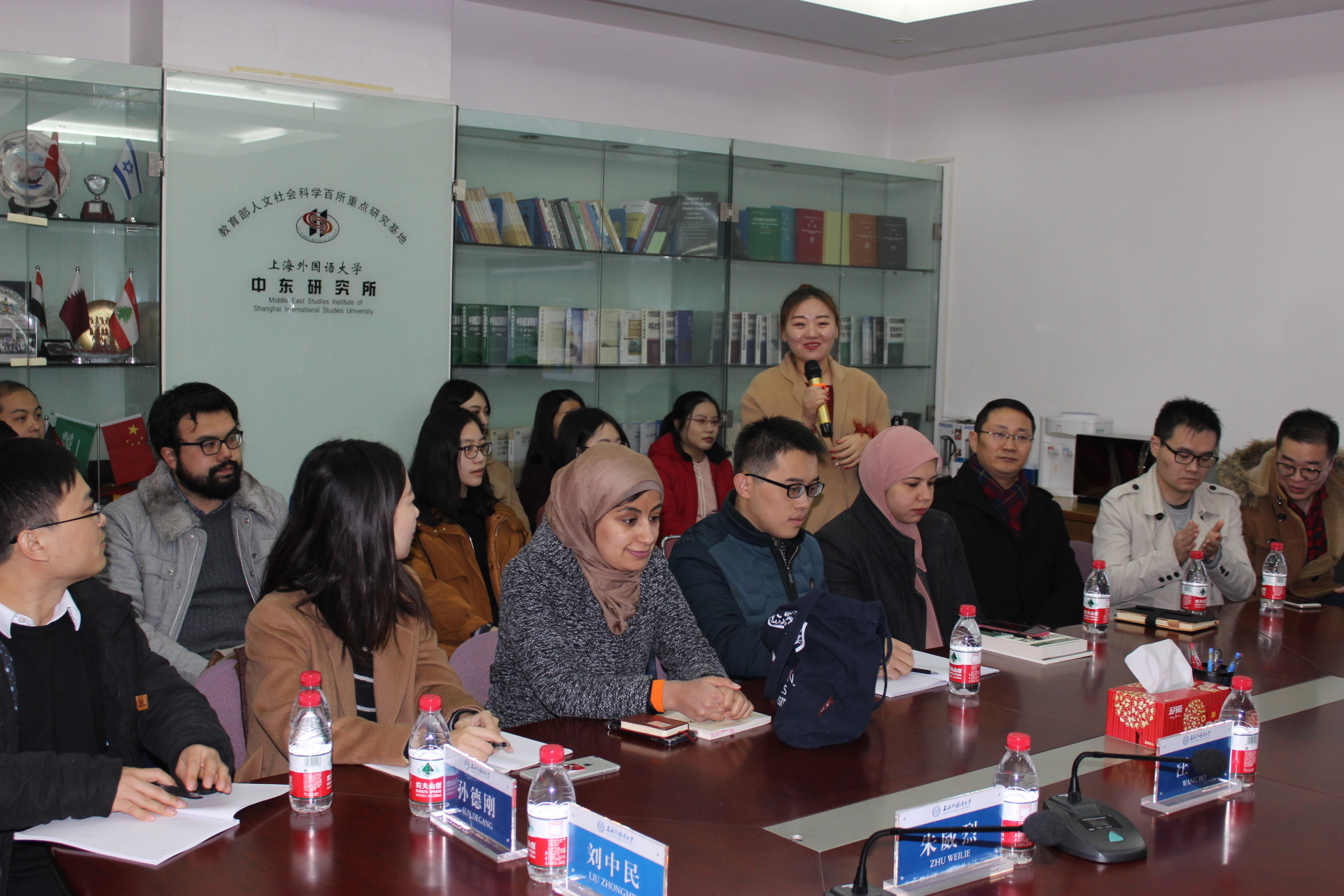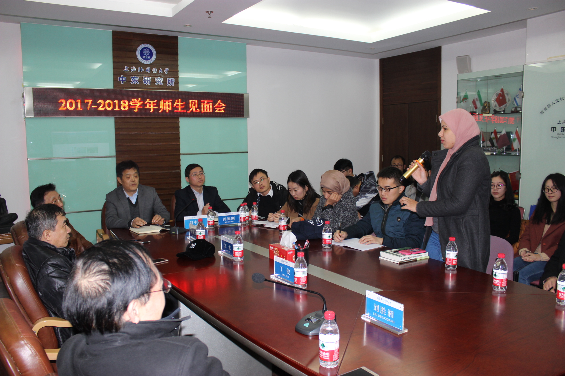 2017年12月22日上午,上外中东所“2017~2018学年师生见面会”在704会议室举行。见面会共分三个议程:所情简介和学生自我介绍、导师代表分享治学经验以及师生互动交流。见面会由孙德刚副所长主持,刘中民所长作会议总结,师生共40余人出席。