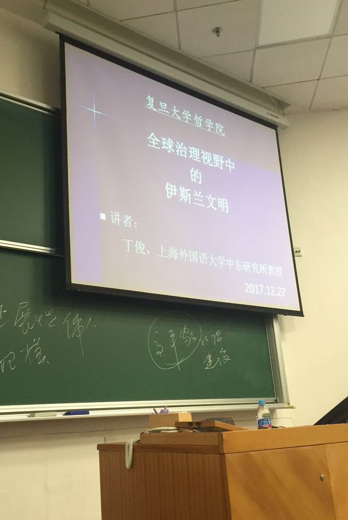 2017年12月27日,上外中东研究所丁俊教授应邀在复旦大学哲学学院作了题为“全球治理视野中的伊斯兰文明”的学术讲座,讲座结合十九大报告确立的新时代中国参与全球治理与世界文明交往的新理念、新思想,就全球治理视野中伊斯兰文明与世界文明的交往互鉴问题作了阐释和讲解,并就相关问题与学生进行了互动交流。复旦大学哲学学院副院长王新生教授主持了讲座。