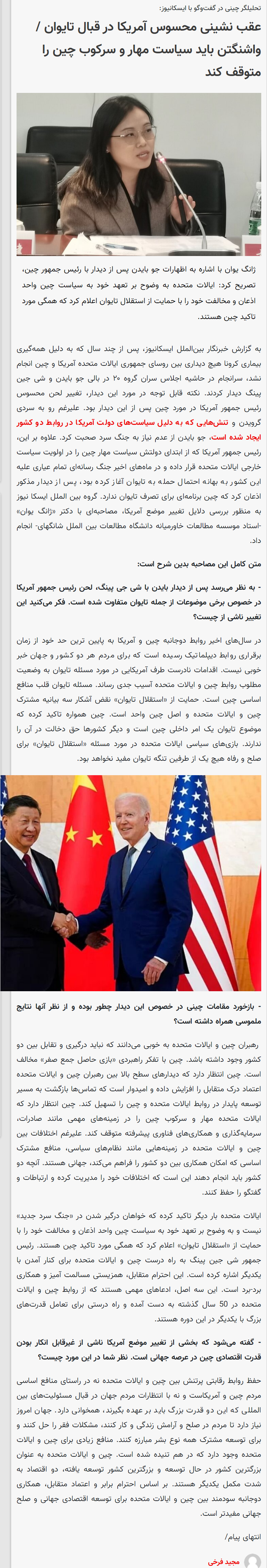 2022年11月19日,上外中东研究所章远研究员就解读中美元首会晤接受伊朗ISCA通讯社的书面采访,全文如下: