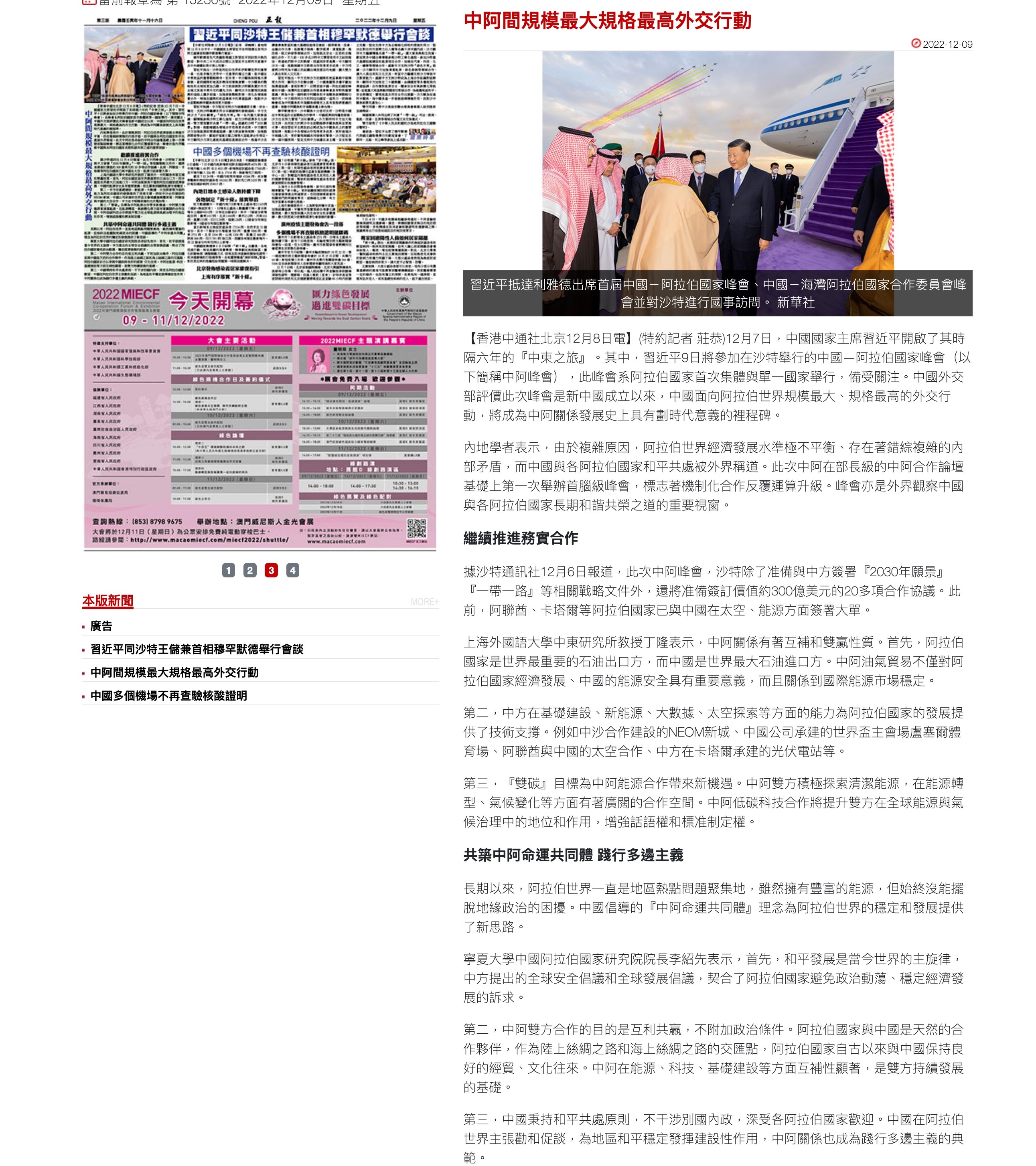 2022年12月9日,上外中东研究所丁隆教授就中阿峰会接受澳门《正报》采访(见《正报》2022年12月9日第3版),全文如下: