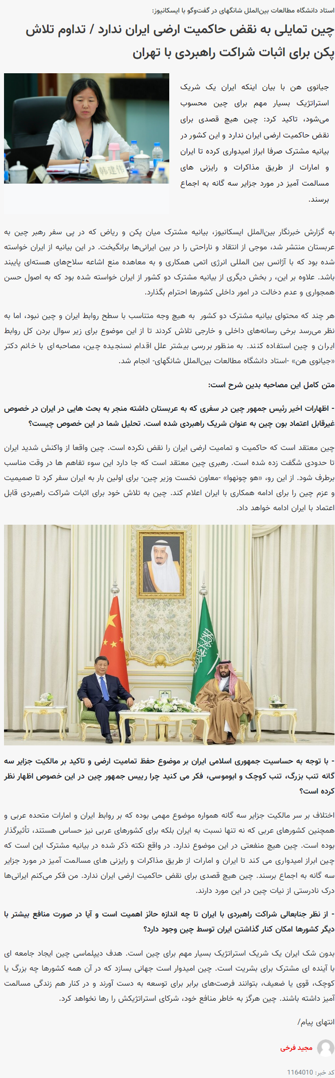 2022年12月26日,上外中东研究所韩建伟副教授就中伊关系发展及两国全面战略伙伴关系的稳健性接受伊朗ISCA通讯社采访,全文如下: