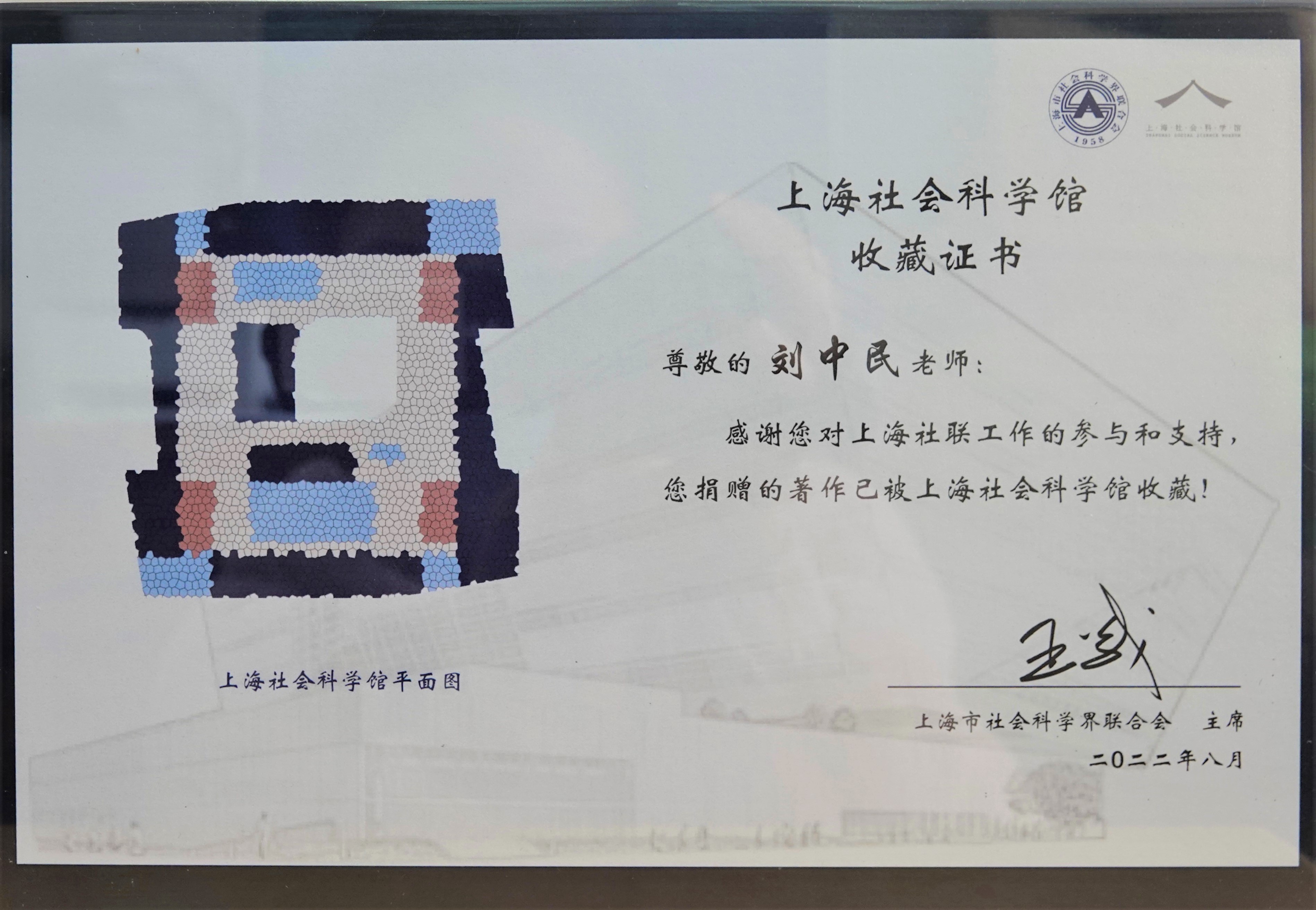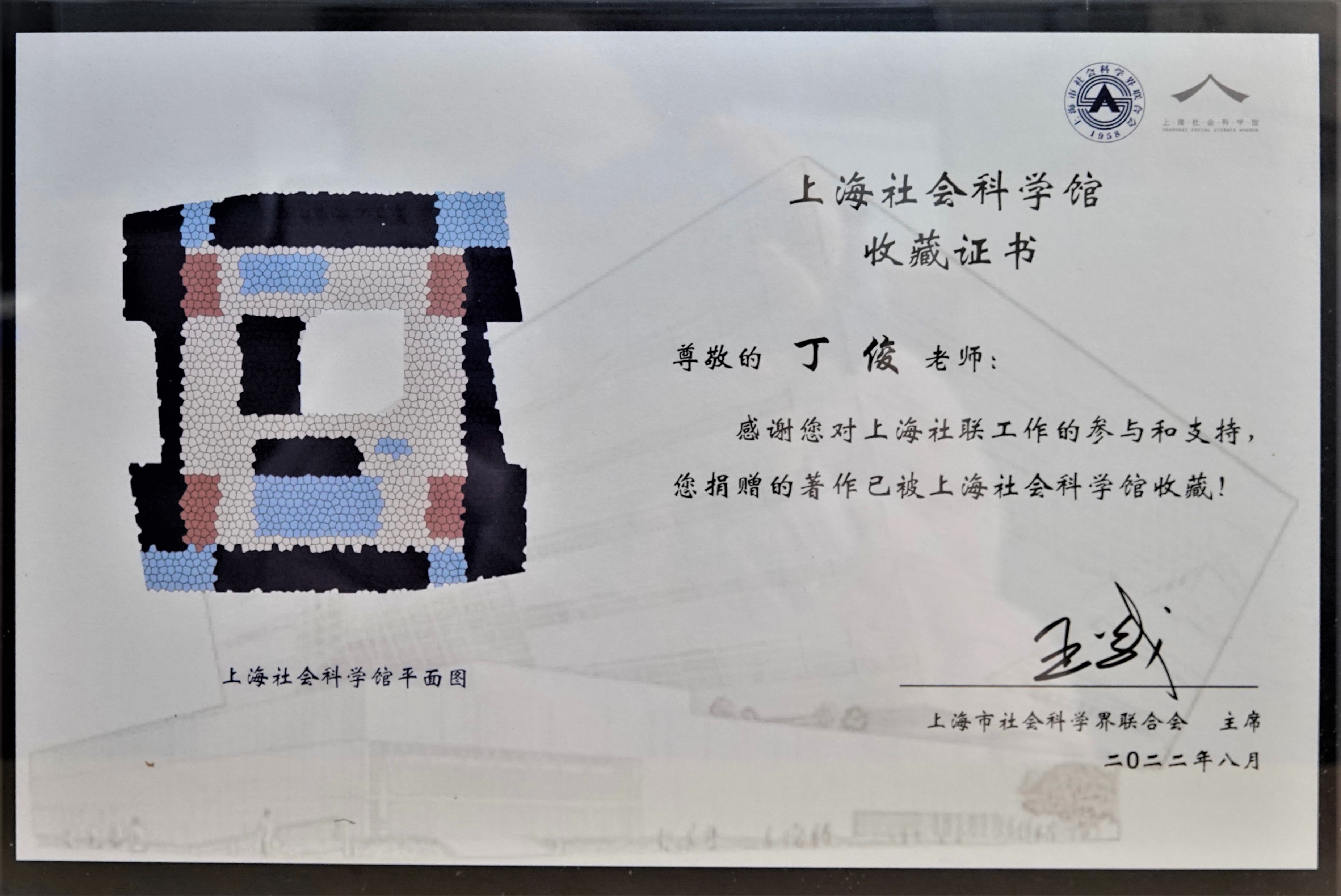 近日,上海市社会科学界联合会向中东研究所丁俊教授和刘中民教授分别颁发上海市社会科学馆收藏证书,并就捐赠著作一事表达感谢。丁俊教授捐赠的著作《伊斯兰文明的反思与重构——当代伊斯兰中间主义思潮研究》(中国社会科学出版社,2016年8月)和刘中民教授捐赠的著作《世界海洋政治与中国海洋发展战略》(时事出版社,2009 年12月)分别荣获第八届高等学校科学研究优秀成果奖(人文社会科学)著作奖(宗教学)二等奖和第六届高等学校科学研究优秀成果奖(人文社会科学)著作奖(国际问题研究)三等奖。