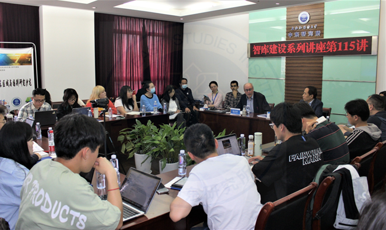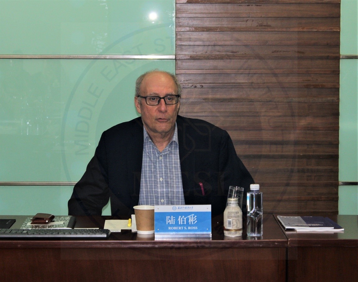 2023年4月19日下午,上海外国语大学中东研究所“智库建设系列讲座”第115讲在虹口校区举行,哈佛大学费正清中国研究中心研究员、美国波士顿学院教授陆伯彬(Robert S. Ross)应邀为上外师生作了题为“中美在中东地区的竞争与合作”的学术讲座。讲座由上外中东研究所所长丁俊教授主持,上海外国语大学对外合作交流处副处长毛小红、中东研究所余泳、章远、赵军、包澄章、韩建伟、舒梦等研究人员及研究生和留学生40余人参加了本次讲座。