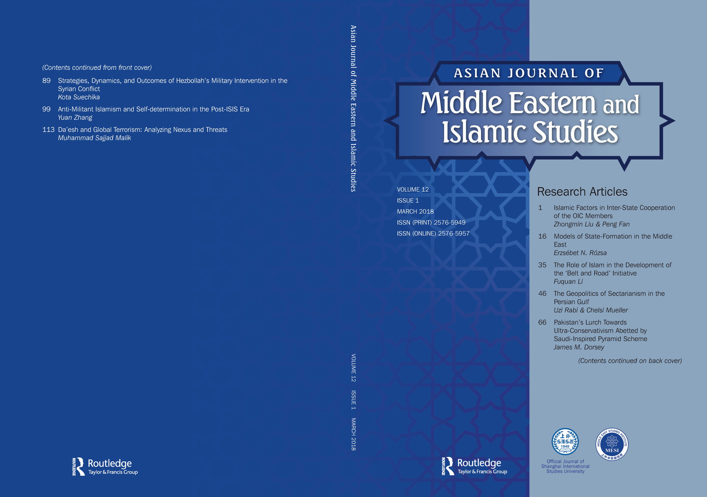 近日,我校《亚洲中东与伊斯兰研究》(AJMEIS)英文学术季刊2018年第1期由国际知名学术出版机构Routledge出版社正式出版(网络版参见:https://www.tandfonline.com/toc/rmei20/current),这是我校在学术期刊国际化方面所取得的一项新的标志性成果。《亚洲中东与伊斯兰研究》创刊于2007年,由我校中东研究所负责期刊的编审工作,该刊于2007至2017年在美国连续出版了11卷,在国内及国际中东研究学界具有一定的影响力。为了促进该刊更上一个台阶,在校领导及相关职能部门领导的大力支持下,经过中东研究所与英国方面的多轮商谈,《亚洲中东与伊斯兰研究》从2018年(第12卷)起改由Routledge出版社出版,这必将进一步提升上海外国语大学及我校中东研究的国际影响力。