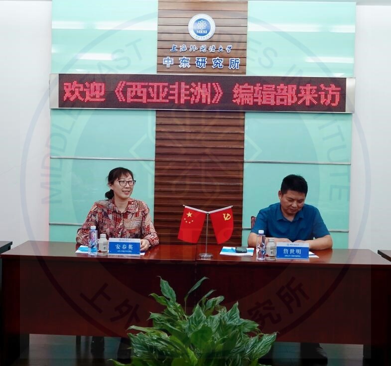 2023年6月16日上午,中国社会科学院西亚非洲研究所《西亚非洲》编辑部主任詹世明副研究员、《西亚非洲》常务副主编安春英编审访问上海外国语大学中东研究所,与《阿拉伯世界研究》编辑部及研究所师生举行工作交流和学术研讨。上外中东研究所章远、刘胜湘、丁隆、范鸿达、李意、赵军、包澄章、韩建伟、文少彪等研究人员及部分硕、博研究生出席交流研讨活动。
