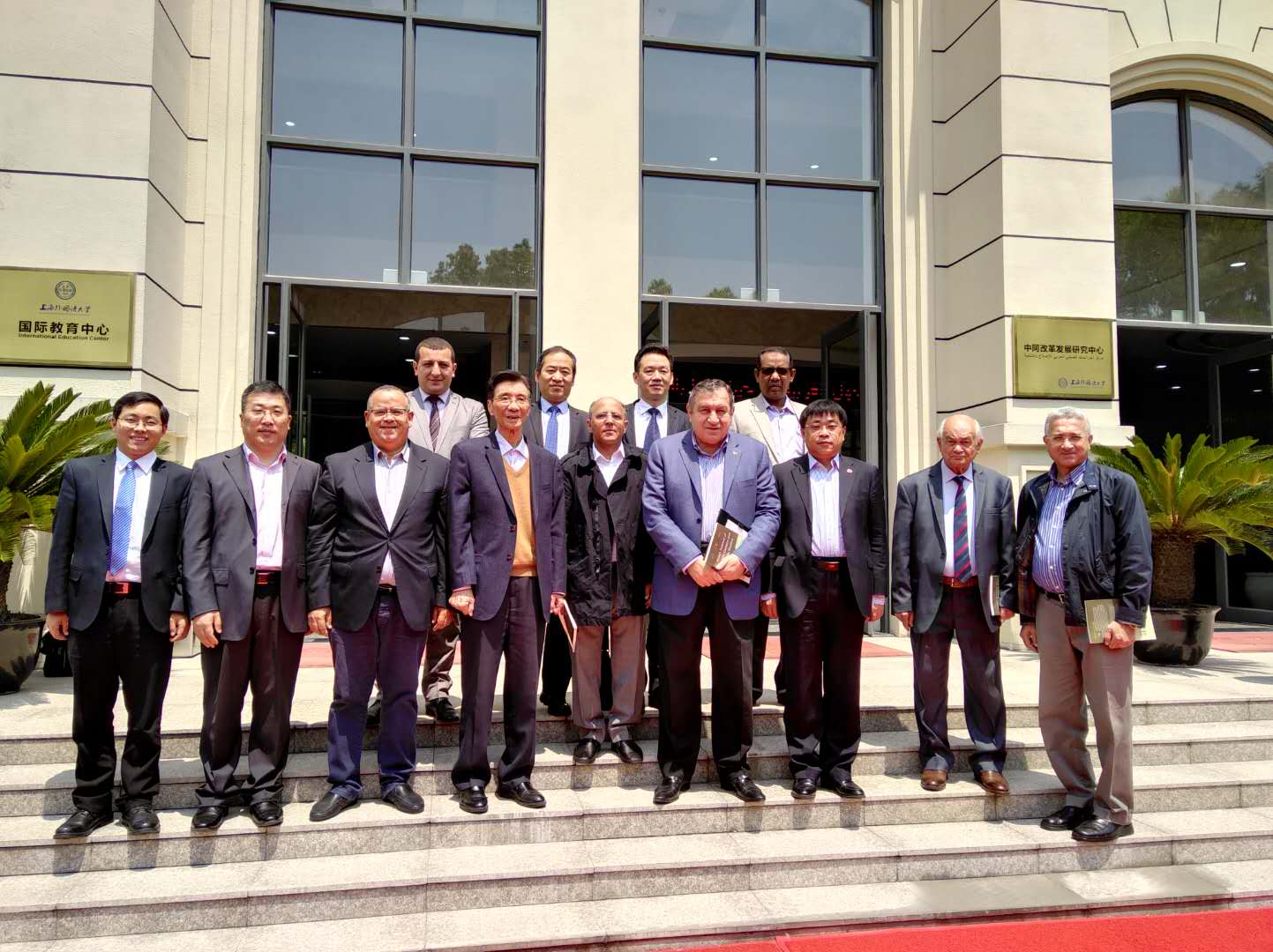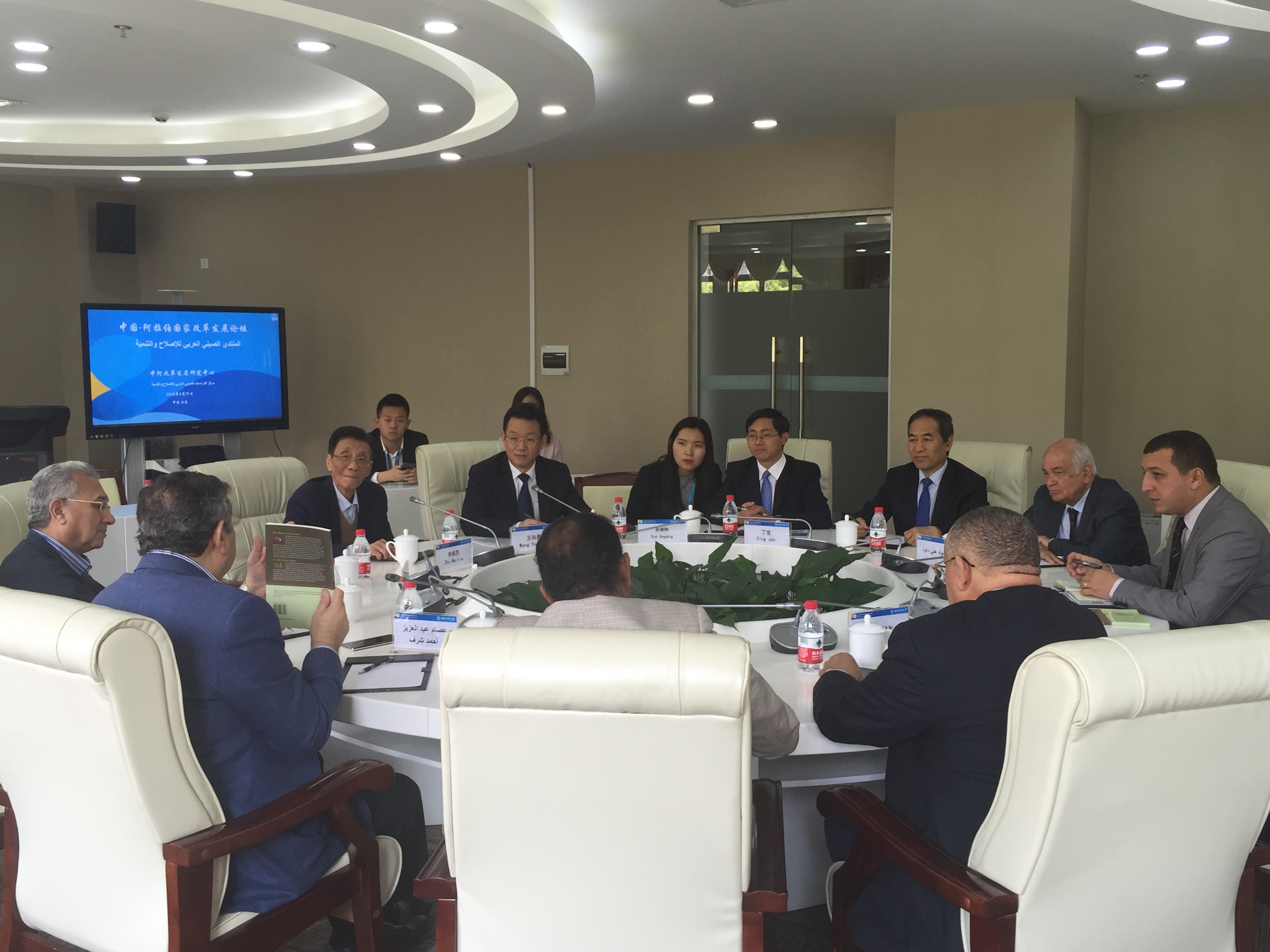 2018年4月25日,来华参加中国—阿拉伯国家改革发展论坛的埃及前总理沙拉夫、苏丹前议长法塔赫以及来自于伊拉克、阿尔及利亚、毛里塔尼亚等国的阿拉伯官员一行七人访问上海外国语大学松江校区,并与上外中东和阿拉伯问题专家举行会谈。中东研究所朱威烈教授、孙德刚研究员和丁俊教授应邀出席会谈,并就新时期中阿发展战略对接、“一带一路”、中阿治国理政经验交流、阿拉伯国家的改革与发展前景等议题,与阿拉伯官员进行了深入交流。