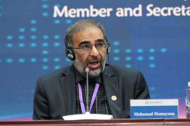 (图为穆罕默德·霍玛约恩教授作主旨发言)