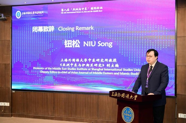 上海外国语大学中东研究所研究员、英文期刊《亚洲中东与伊斯兰研究》(Asian Journal of Middle Eastern and Islamic Studies)副主编钮松在闭幕致辞中强调,本次论坛旨在深入学习贯彻中共二十大精神,加强国际学术交流,推进国际传播能力建设,助力中东地区安全与发展研究。他感谢专家学者们对“亚洲与中东”国际论坛的积极参与,表示上外中东研究所将与各有关方面协同合作,继续致力于“亚洲与中东”国际论坛的建设。