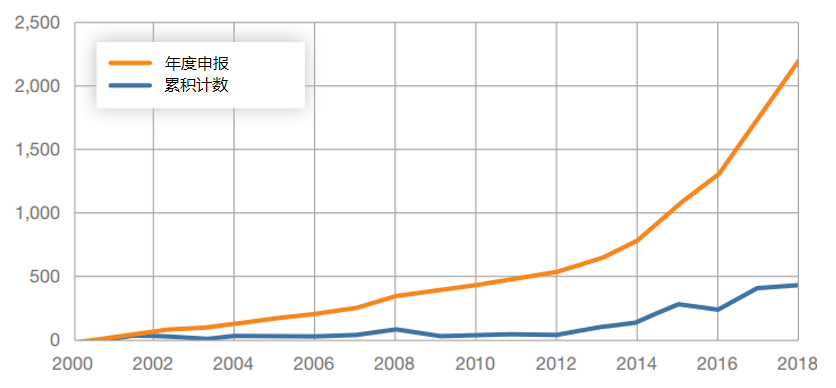 图21:2000-2019年中国量子技术专利申请的累计计数