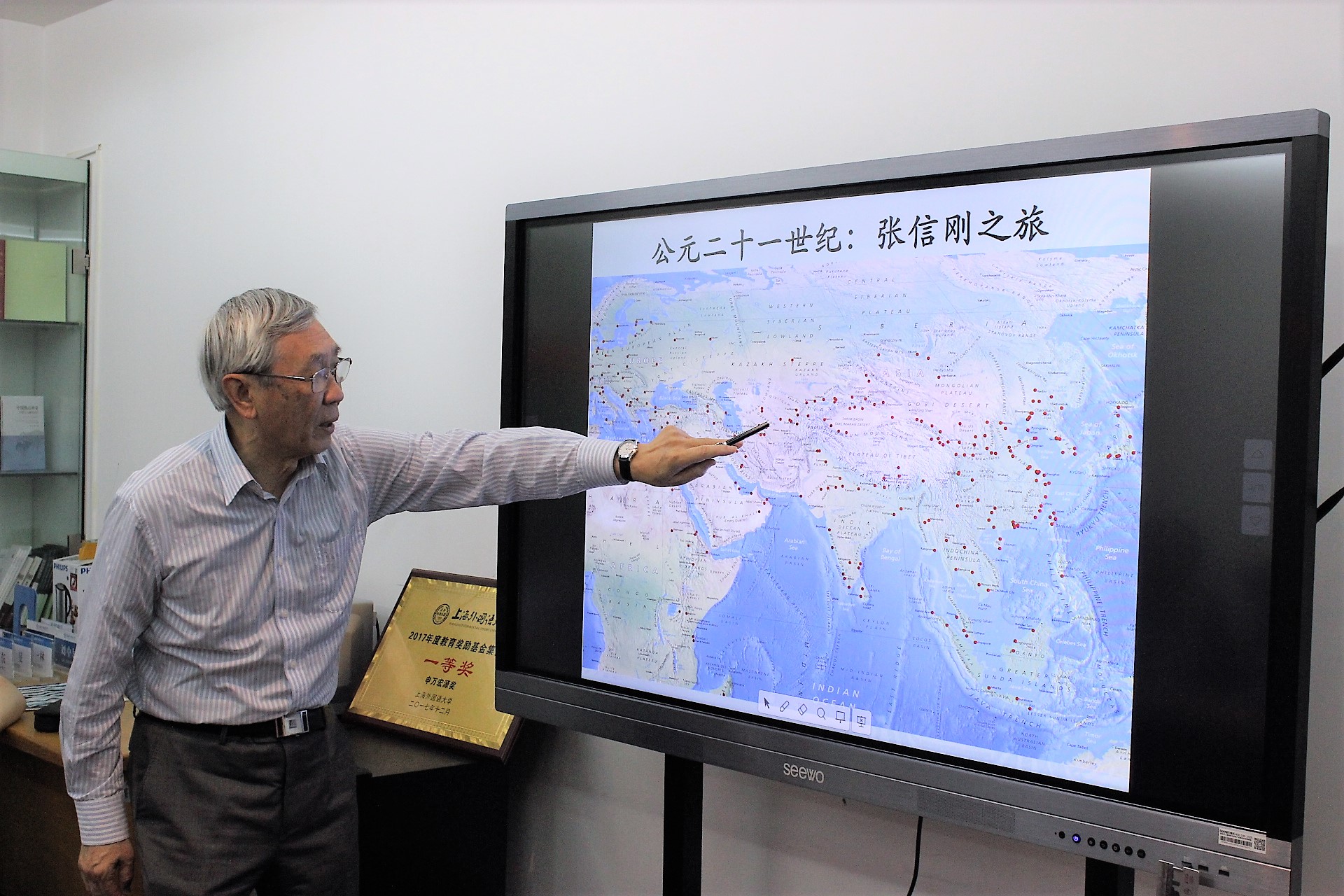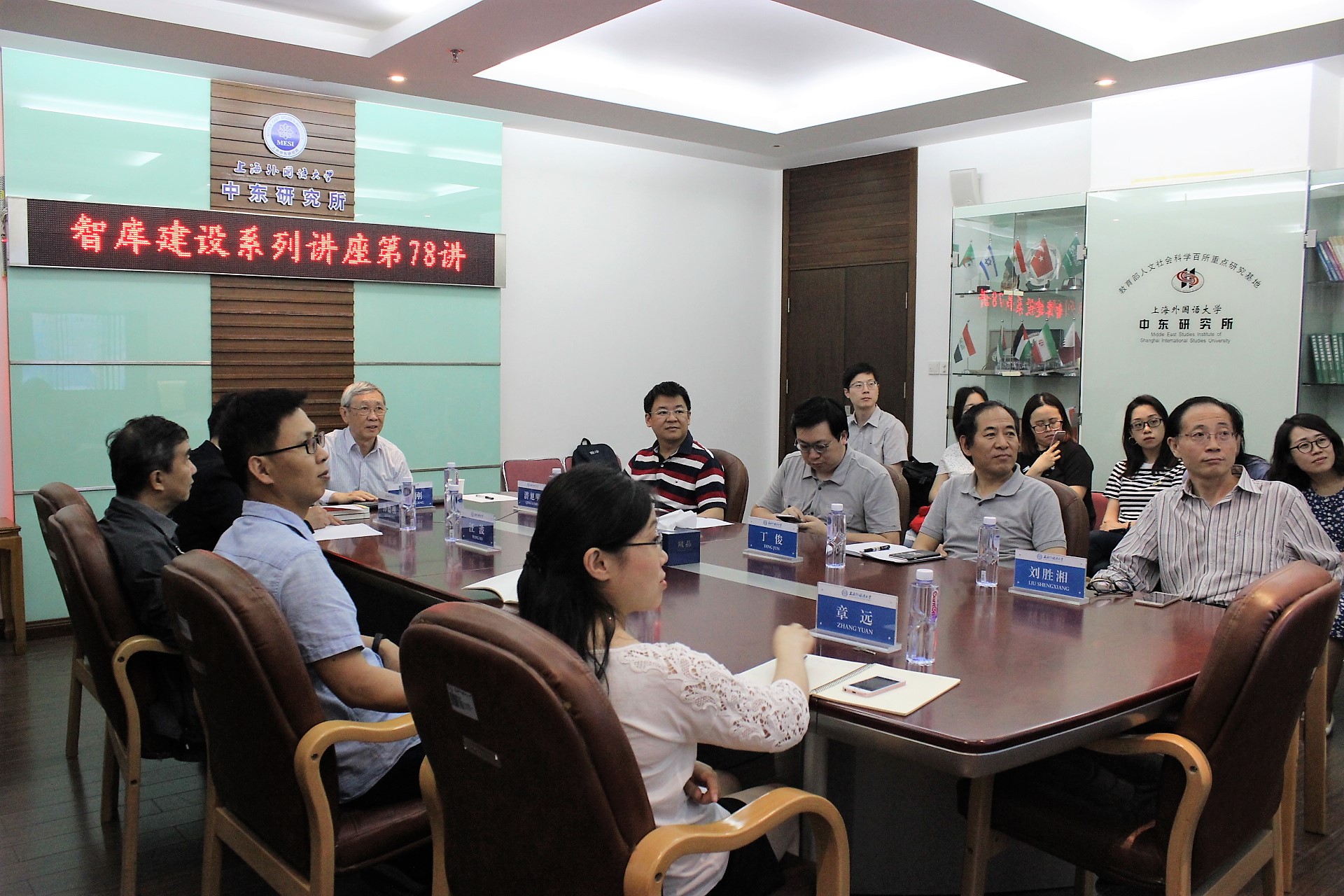 2018年6月11日上午,英国皇家工程院外籍院士、香港文化委员会主席、香港创新科技顾问委员会委员、香港城市大学原校长张信刚教授访问上外中东研究所,并以“我最孤独的一天——从马雷到尼沙普尔”为题作学术演讲。中东研究所孙德刚副所长和汪波、丁俊、刘胜湘、钮松、潜旭明、章远、邹志强等研究人员和其他院系的师生共20余人参加了此次活动。