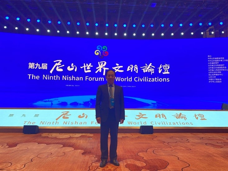 本届论坛的主题为“全人类共同价值与人类命运共同体——加强文明交流互鉴 共同应对全球挑战”,设有1个主论坛和13个平行分论坛以及多种系列研讨交流活动。来自中国与世界各国的1600余名中外嘉宾和专家学者齐聚尼山圣境,共话文明交流互鉴。论坛由中国教育部、文化和旅游部、国务院侨办、中国社会科学院、中国人民对外友好协会、国际儒学联合会、山东省政府共同主办。上外中东研究所所长丁俊教授应邀参加本届论坛,并在27日下午举行的平行分论坛做了题为“新时代中阿文明交流互鉴助力世界文明和合共生”的学术发言。