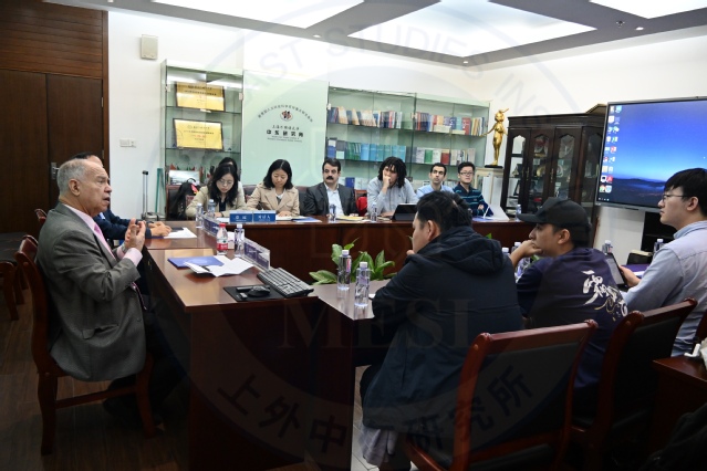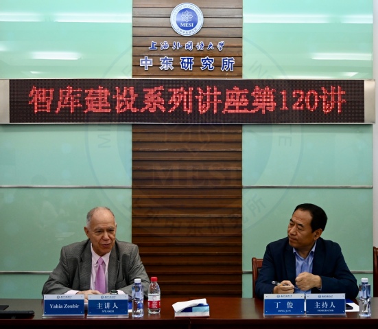 2023年11月9日上午,上海外国语大学中东研究所“智库建设系列讲座”第120讲在虹口校区举行。卡塔尔中东全球事务委员会非常驻高级研究员Yahia H. Zoubir(祖必和)教授应邀作了题为“加沙危机:影响及趋势”的学术讲座。讲座由上外中东研究所所长丁俊教授主持,章远研究员参与对话。上外中东研究所韩建伟、舒梦等研究人员及研究生和留学生参加本次讲座。