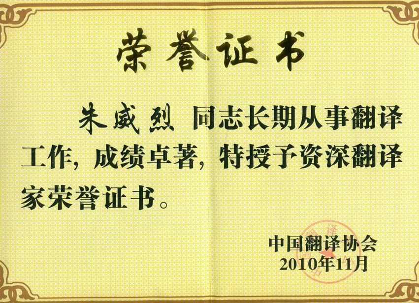 月,中国翻译协会授予中东所朱威烈教授“资深翻译家”称号,以表彰其多年来在翻译领域取得的成就。
