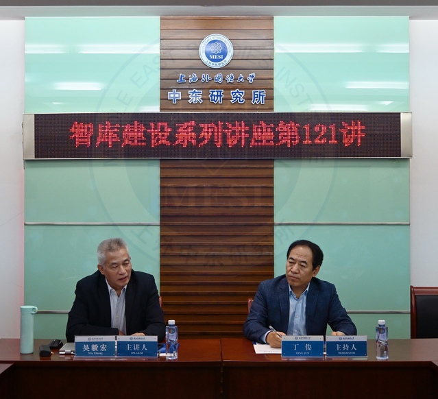 2023年12月8日上午,上海外国语大学中东研究所“智库建设系列讲座”第121讲在虹口校区举行。原新华社中东总分社社长、党组书记,“太和智库”高级研究员吴毅宏应邀作了题为“当前巴以冲突对国际格局和中东地缘政治的影响”的学术讲座。讲座由上外中东研究所所长丁俊教授主持,中东研究所余泳副所长、钮松、丁隆、章远、赵军、舒梦、张菡文、韩雨新等研究人员及研究生和留学生参加本次讲座。