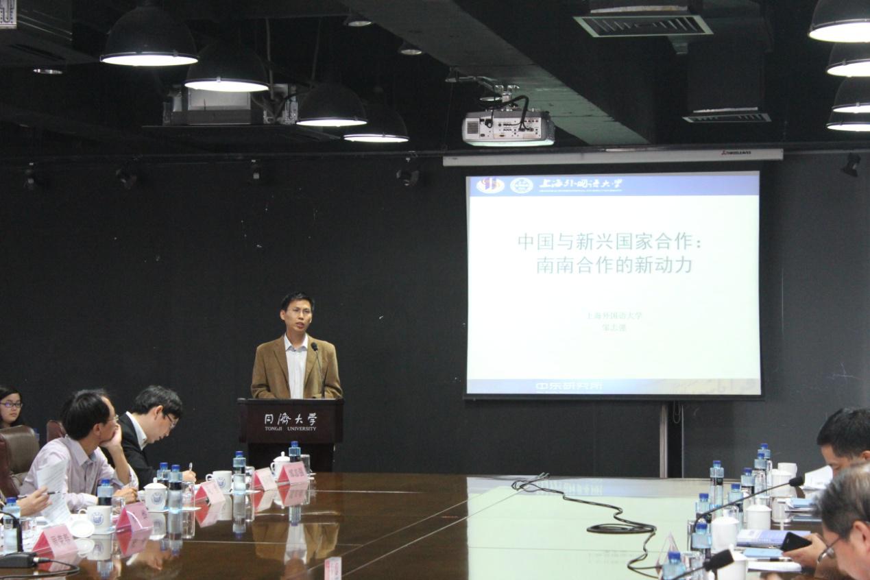 中东研究所邹志强博士应邀参加了此次会议,并在当天下午于颁奖仪式之后举行的青年论坛上作了交流发言,其论文《中国与新兴国家间合作:南南合作的新动力》获“首届联合国研究青年论坛”征文活动一等奖。此次征文的7位获奖作者在青年论坛上先后作了交流发言,同济大学杨烨教授与复旦大学张贵洪教授分别作了点评。此次征文共评选出一等奖1名、二等奖3名、三等奖5名以及优秀奖7名。