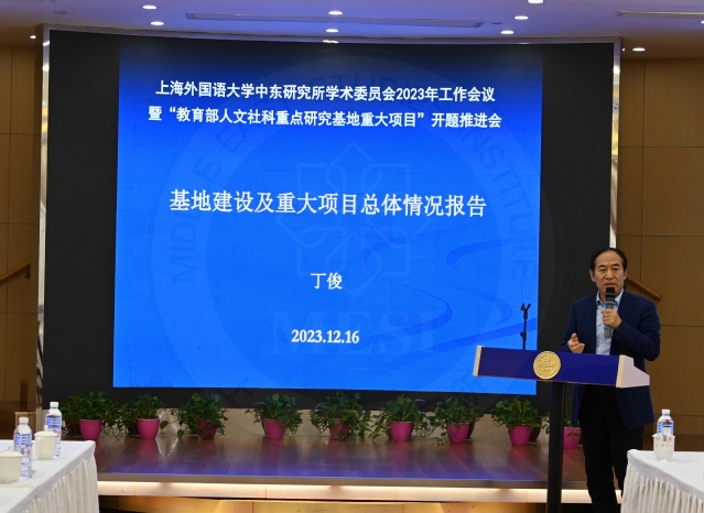 分论坛三为上海外国语大学中东研究所学术委员会2023年工作会议暨“教育部人文社科重点研究基地重大项目”开题推进会。上外中东研究所学术委员会主任丁隆教授主持会议。上外中东研究所所长丁俊教授首先做了“基地建设及重大项目总体情况报告”,五位基地重大项目负责人丁俊教授、上外中东研究所刘中民教授、兰州大学历史文化学院敏敬教授、复旦大学中东研究中心孙德刚研究员、上外中东研究所丁隆教授分别就“百年变局下中东文明发展趋势研究”“百年变局下国际体系与中东地区互动关系研究”“百年变局下中东族群问题及治理研究”“百年变局下中东治理的大国作用与影响研究”“百年变局下中东经济转型发展研究”项目开题以及研究进展情况做了汇报。上外中东研究所副所长余泳副研究员做了关于“中东研究所基地系列重大培育项目总体情况报告”。