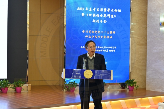 上海外国语大学副校长查明建教授在开幕式欢迎辞中指出,上海外国语大学坚持致力于促进多学科领域知识创新和学科交叉融合,不断拓展包括中东研究在内的国别区域全球知识领域研究,着力强化国内外学术交流与合作,致力于建成国别区域全球知识领域特色鲜明的世界一流外国语大学。上外中东研究所于2000年入选中国教育部人文社会科学重点研究基地,长期致力于推动中国特色的中东学学科体系建设,在学术研究、人才培养、社会服务、国际交流等各方面不断取得显著成绩。上外中东研究所负责主办的中文期刊《阿拉伯世界研究》、英文期刊《亚洲中东与伊斯兰研究》以及《中东地区发展报告》在学术界的影响日益扩大。在刚刚结束的2023年度“新型智库治理论坛”上,上外中东研究所有关成果入选CTTI智库建设示范案例并获优秀成果一等奖。查明建对上外中东研究所名誉所长朱威烈教授荣获中国翻译协会“翻译文化终身成就奖”和上海市哲学社会科学“学术贡献奖”表示祝贺,他说,朱威烈教授作为上外中东研究所的创始所长和名誉所长,长期以来为上外的学科建设和中东研究所的发展殚精竭虑,做出了卓越贡献。查明建强调,党的二十大报告指出:“当前,世界之变、时代之变、历史之变正以前所未有的方式展开。”深入学习贯彻二十大精神,开拓中东研究新领域,推动构建中国中东研究自主知识体系,是中东学界肩负的重大时代责任。