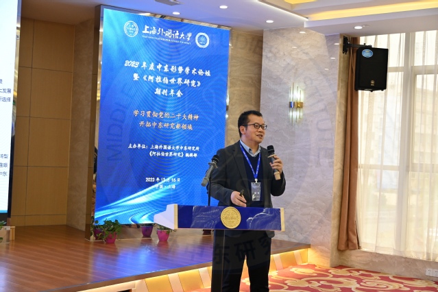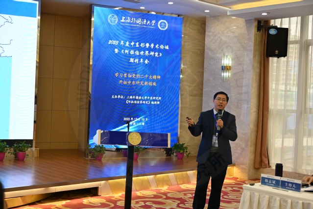 本次论坛和年会的闭幕式环节由《阿拉伯世界研究》副主编兼编辑部主任、上海外国语大学中东研究所李意副研究员主持,上海外国语大学中东研究所助理研究员文少彪、中阿改革发展研究中心博士后李世峻、上海外国语大学中东研究所学术委员会主任丁隆教授分别汇报交流了分论坛一、分论坛二和分论坛三的研讨情况。