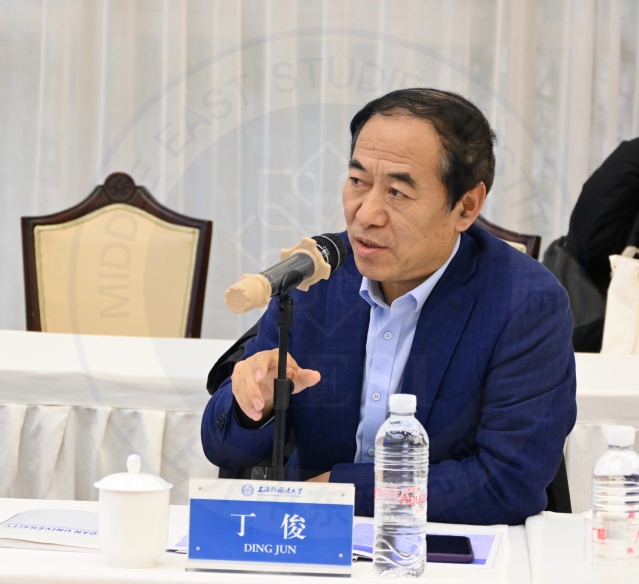 教育部人文社会科学重点研究基地主任、上海外国语大学中东研究所所长丁俊教授首先做“基地建设及重大项目总体情况报告”。丁俊教授结合教育部有关基地建设最新要求与最新工作任务,从学科建设、人才培养、智库服务、对外交流、数据库建设等方面对中东研究所重点研究基地新的功能定位、建设目标和发展规划做了说明,并就基地建设“十四五”规划及基地重大项目设计与推进总体情况做了通报。丁俊教授介绍,上外中东研究所确立“十四五”重大项目主攻方向为“世界百年未有之大变局下‘中东之治’的重大理论与现实问题研究”,项目设计紧扣国家发展战略需求,聚焦学术前沿,突出问题导向,通过推进项目研究进一步发挥智库功能,不断强化有组织科研,着力提升科研能力和咨政服务能力,积极助力学校“双一流”建设,更好服务国家和地方对外交往与经济社会发展大局。
