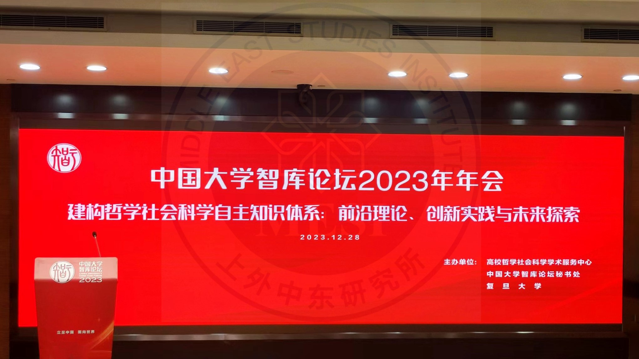 2023年12月28日,中国大学智库论坛2023年年会在复旦大学举行,论坛的主题是“建构哲学社会科学自主知识体系:前沿理论、创新实践与未来探索”。在上午的全体大会上,复旦大学校长、中国科学院院士金力主持了领导致辞,复旦大学党委书记裘新和教育部党组成员、副部长翁铁慧先后致辞;复旦大学副校长陈志敏主持了高校哲学社会科学学术服务中心成立仪式和高校哲学社会科学自主知识体系建设战略咨询委员会委员聘书颁发仪式;中国人民大学党委书记张东刚、中国传媒大学党委书记廖祥忠、北京外国语大学校长杨丹、武汉大学党委常务副书记沈壮海和复旦大学美国研究中心主任吴心伯先后发表主旨演讲。下午举行了两场平行分论坛,分别为“中国特色新型高校智库工作推进会”和“中国特色哲学社会科学研究重大专项工作推进会”。