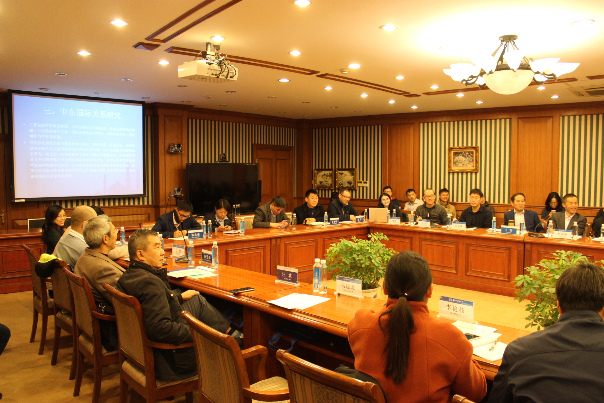 2018年11月17日,“中东地区形势研讨会暨《阿拉伯世界研究》2019年度选题策划会”在上海外国语大学召开。本次研讨会由上海外国语大学中东研究所和《阿拉伯世界研究》编辑部联合举办,来自上海外国语大学、上海社会科学院、上海国际问题研究院、上海大学、中国社会科学院、中国现代国际关系研究院、北京外国语大学、西北大学、内蒙古民族大学、云南大学、辽宁大学、湘潭大学和以色列海法大学等单位的40余位专家、学者、媒体人士和研究生出席会议。