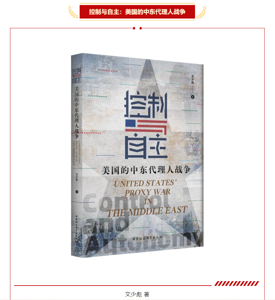 近日,中国社会科学出版社发布了“2023年度优秀出版成果及年度好书”,上外中东研究所助理研究员文少彪的著作《控制与自主:美国的中东代理人战争》被评为“2023年度好书”,评审意见为“代理人战争是美国施加全球霸权的重要方式之一。该书对美国在中东推行的代理人战争模式进行了深入研究,对于加强该议题的学术理解具有理论价值,同时也有助于深入全面解读美国战略与中东局势。”