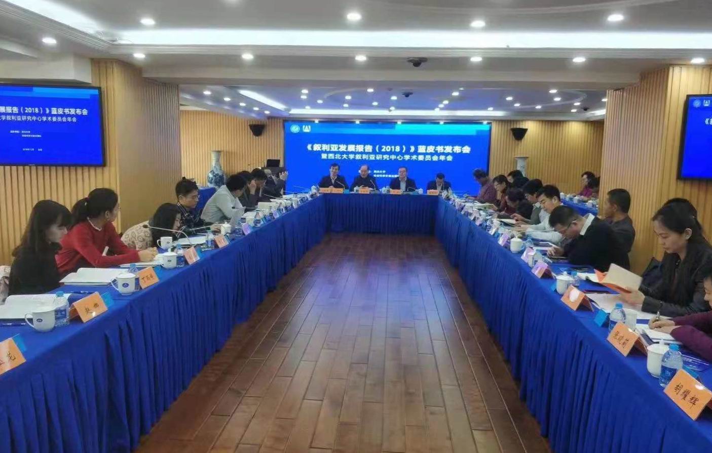 发布会后,西北大学叙利亚研究中心召开了研究中心学术委员会年会。西北大学叙利亚研究中心主任王新刚教授汇报并总结201710月中心成立以来的各项工作,并就未来中心建设和发展提出了规划和设计。刘中民教授作为西北大学叙利亚研究中心学术委员会顾问作会议发言。与会嘉宾就叙利亚中心建设、人才培养和中东热点问题进行了深入讨论。