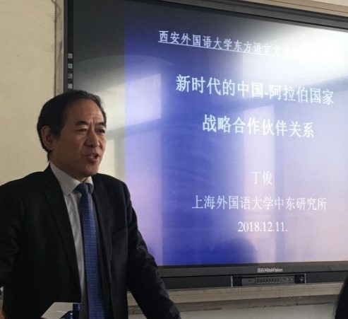 2018年12月11日,上外中东研究所丁俊教授应邀在西安外国语大学东方语言文化学院作了题为“新时代的中国—阿拉伯国家战略伙伴关系”的学术讲座,讲座由西安外国语大学东方语言文化学院副院长唐雪梅教授主持。丁俊教授从新时代中国特色大国外交视野出发,聚焦“全面合作、共同繁荣、面向未来的中阿战略合作伙伴关系”,就新时代中阿关系的新发展、新内涵、新特征等进行了深入讲解和评析。讲座结束后,丁俊教授还与现场师生进行了交流互动,回答了同学们提出的问题。