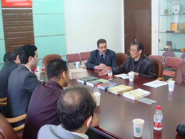 2012年3月27日上午,中央电视台阿语频道外籍专家代表团访问了上外中东研究所,与中东所名誉所长朱威烈教授举行会谈。双方就阿拉伯世界动荡原因、媒体如何报道中国对叙利亚问题立场、中国与阿拉伯国家关系、中阿文化交流等多个问题进行了深入交流,朱威烈教授向来访代表团介绍了中国阿拉伯语教育现状和阿拉伯语典籍在中国的译介情况。会后朱威烈教授与来访代表团互赠礼物。(中东所)