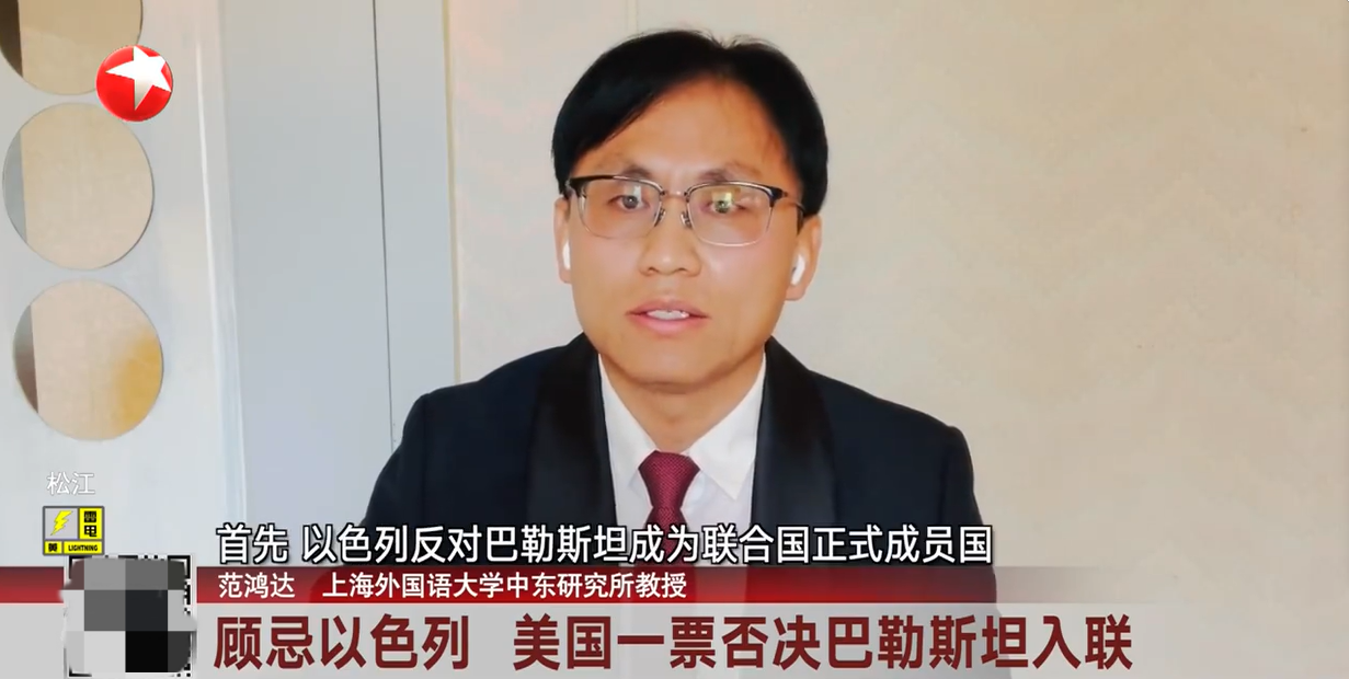 2024年4月28日,上外中东研究所范鸿达教授就巴以冲突及其外溢参加东方卫视《环球交叉点》节目。