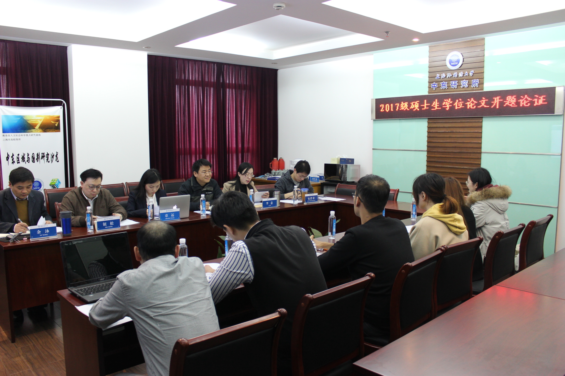 2019年3月18日下午,上外中东研究所举行2017级硕士研究生学位论文开题报告会,杨洋、王天冉、李佳欣、徐伟杰、Enkhtaivan Uuganbaatar、Otajonov Komronbek先后汇报了各自论文的选题、研究思路、文献收集等情况。硕士生李念慈在以色列特拉维夫大学留学,导师们集中意见形成文字反馈。中东研究所研究人员钮松、章远、余泳、李意、包澄章、潜旭明等出席开题答辩会,从选题、框架、文献等角度,针对存在的问题对每位学生的开题报告进行了评述并提出修改建议。韩建伟导师因赴英国访学,通过邮件反馈了对每位硕士研究生开题报告的点评与建议。