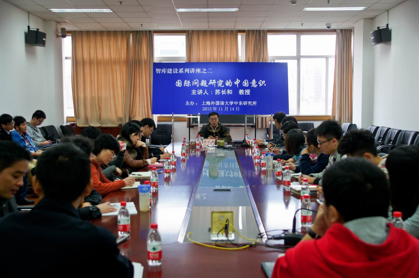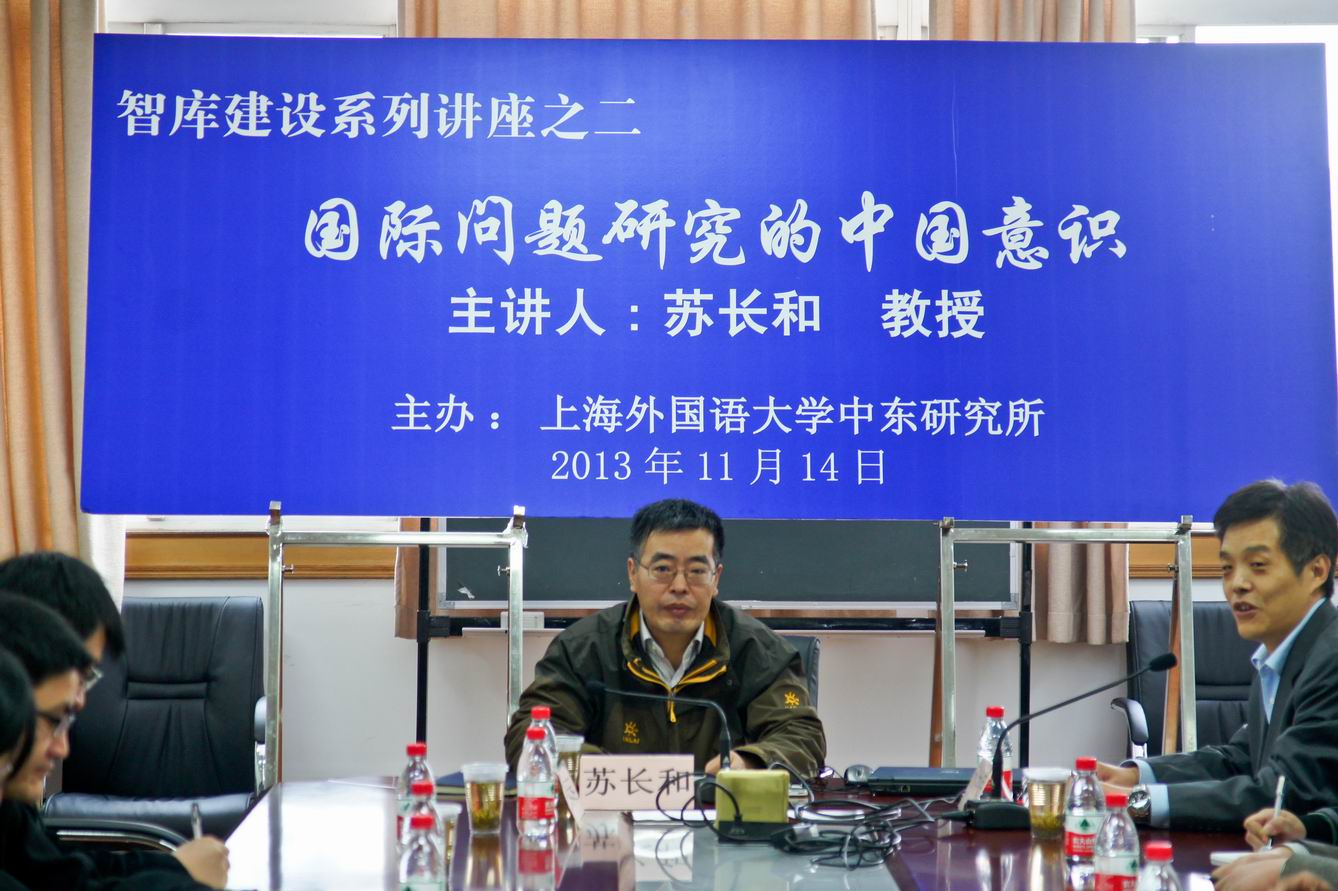 2013年11月14日上午,应上外中东所邀请,复旦大学国际关系与公共事务学院副院长苏长和教授在图书馆604会议室为我校师生作了题为“国际问题研究的中国意识”的专题讲座,讲座由中东研究所所长刘中民教授主持,来自中东所、国研院和其他院系的师生30余人聆听了讲座。