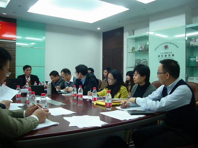 2014412日,由上海外国语大学中东研究所和国际关系与外交事务研究院联合举办的“美国、联合国与中东地区治理研讨会暨国家社科基金开题报告会”在上外中东所704会议室举行。来自西安交通大学、西北大学、上海国际问题研究院、上海社科院、复旦大学、上海交通大学以及上海外国语大学的中青年学者近20人出席会议,并就国际组织的发展趋势、联合国改革、中国参与多边地区治理、美国在中东伊斯兰地区的军事基地、美国参与中东地区治理等议题展开讨论。上外中东所孙德刚研究员和国关院汤蓓助理研究员分别就自己承担的2003年度国家社科基金课题“美国在中东伊斯兰地区军事基地的战略部署与调整趋势研究”和“国际组织行政模式与联合国秘书处的运作研究”作了专题汇报。中东所名誉所长朱威烈教授出席会议,并勉励大家在研究过程中注重中国立场与中国视角,敢于探索战略性和前瞻性课题,深化对国际前沿问题的探索和研究。
