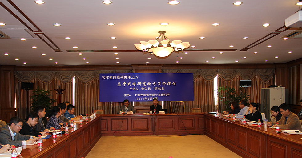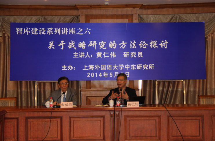 2014年5月6日下午,应上外中东研究所的邀请,上海社会科学院副院长、历史研究所所长、上海外国语大学国际关系与外交事务研究院院长黄仁伟研究员在会议中心英伦厅作了题为“关于战略研究的方法论探讨”的专题报告。讲座由中东所朱威烈教授主持,中东所、国关院、俄罗斯研究中心、欧盟研究中心和其他院系的50多名师生出席了此次报告会。
